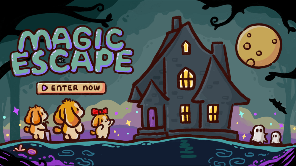 In this enchanting experience, you'll team up with three cute doggies on a special escape journey. Follow the magical book's lead through a world full of wonders and mysteries. Brew the witch's potion using special ingredients to discover hidden secrets. Solve tricky puzzles, find hidden treasures, and have a blast with your furry pals!