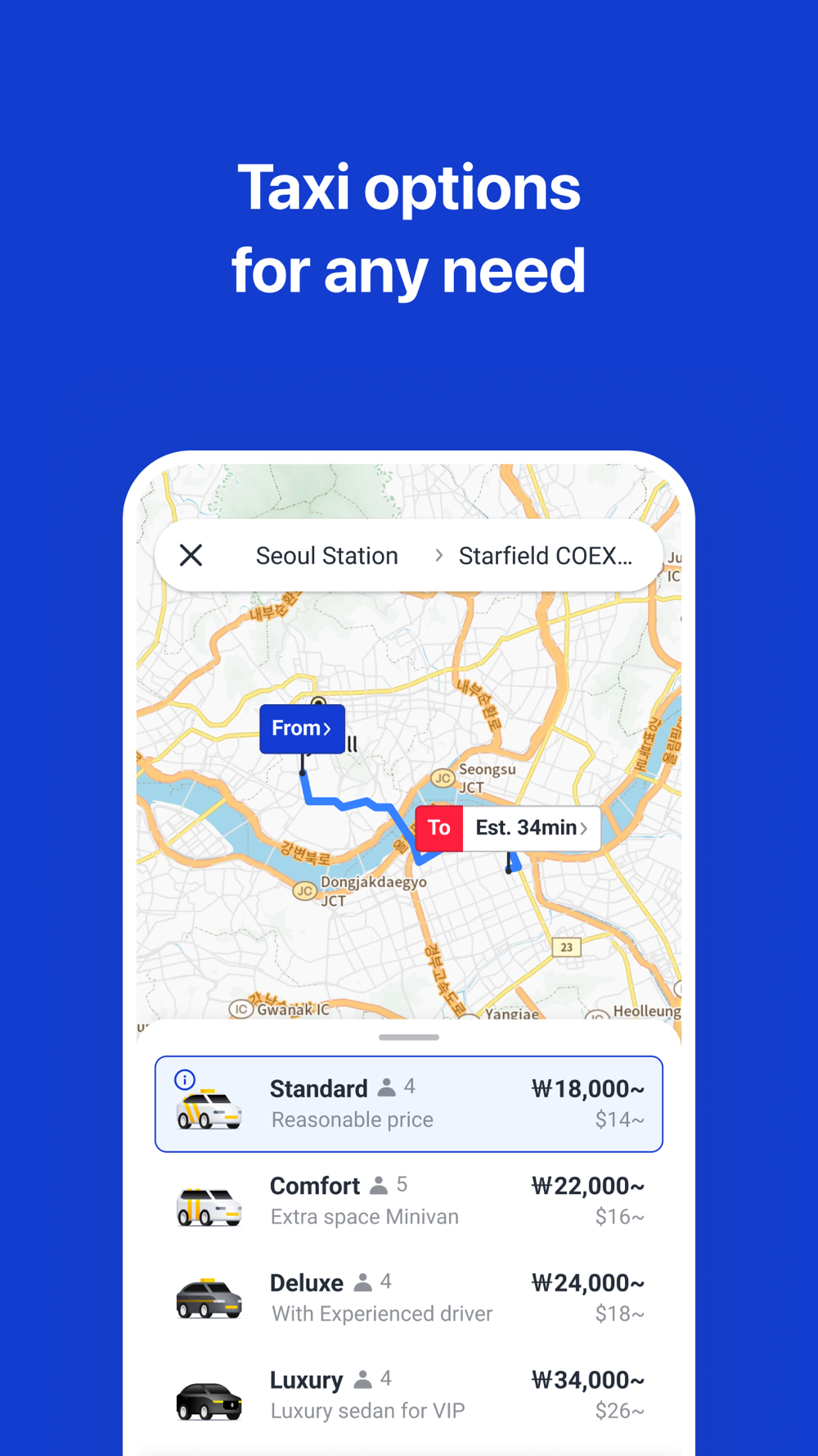 k.ride supports 133 languages so users can easily search for destinations and communicate with drivers in their preferred language. Plus, our app is available in four languages—English, Japanese, Simplified Chinese, and Traditional Chinese—ensuring a seamless experience wherever you go.
