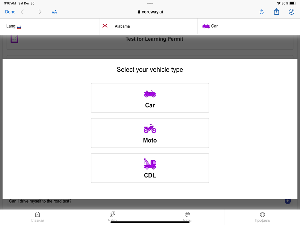 You will be able to read and listen to the DMV manual, as well as practice passing theoretical tests on the Learning Permit. An interactive assistant based on artificial intelligence will help you in this process at all stages. Here you can get all the information on the necessary documents to register for the theory test.