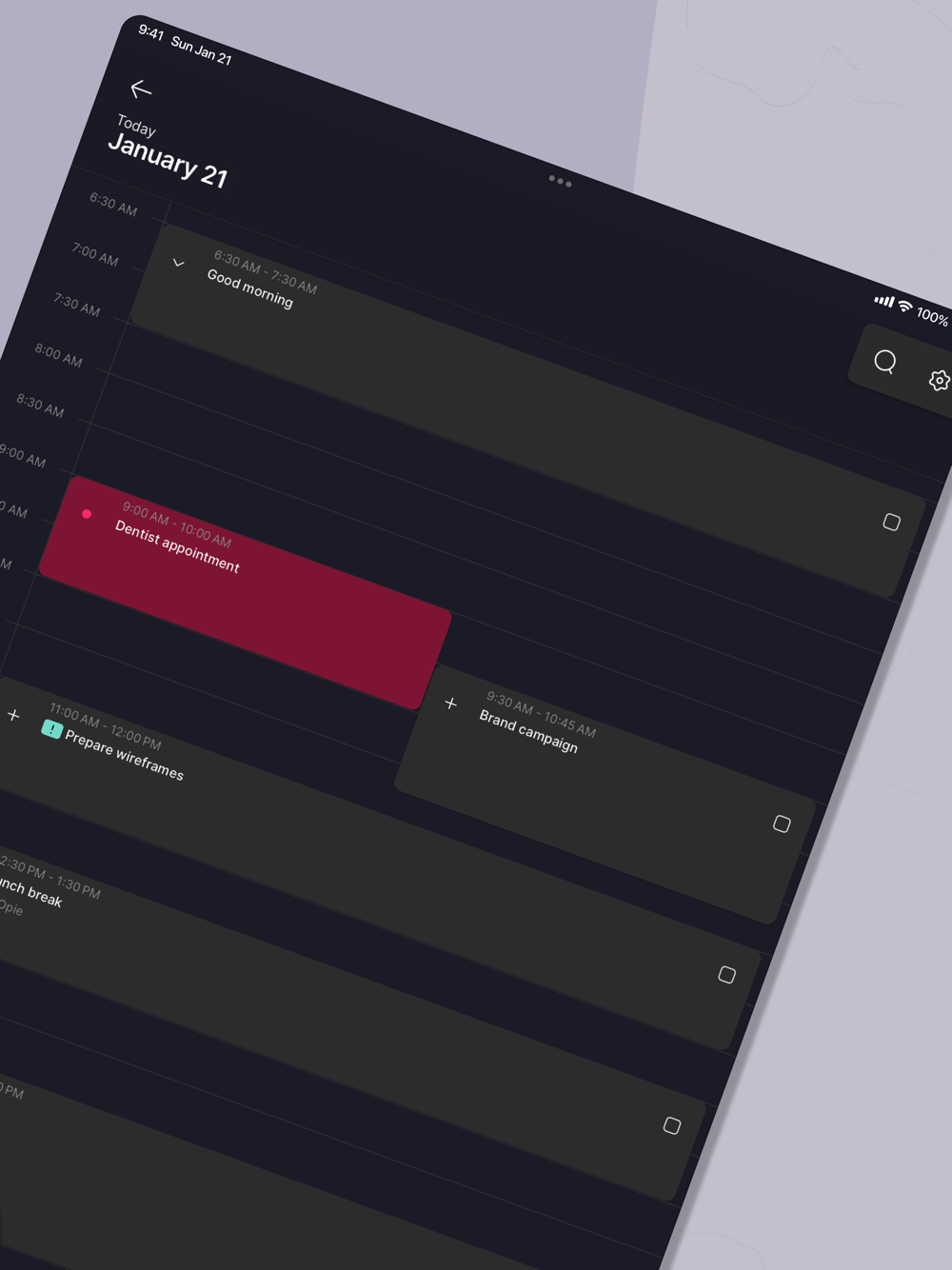 • Manage tasks and events as blocks on a timeline for realistic planning