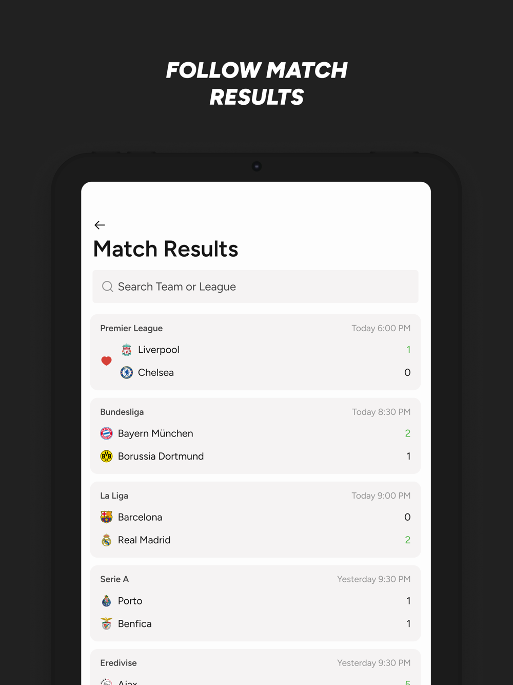 You can create team and league based watchlists and receive instant score and prediction notifications for your favourite teams' matches.