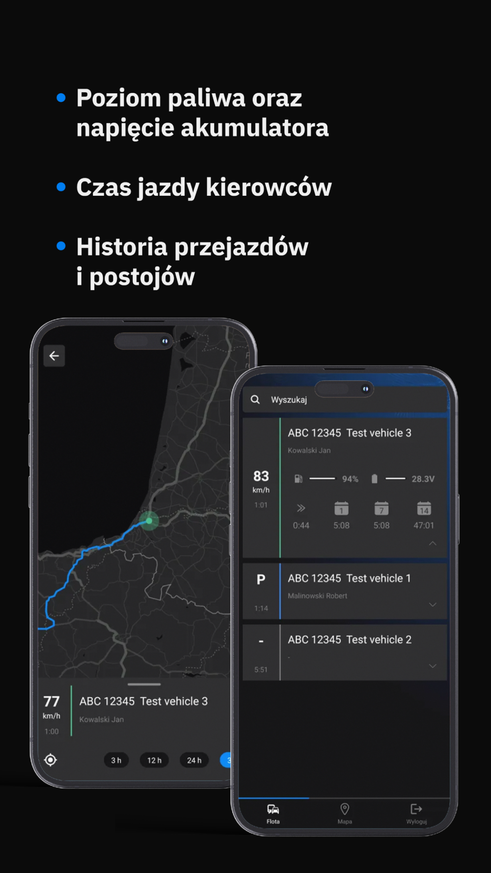 Monitoring pojazdów: Śledź lokalizację pojazdów w czasie rzeczywistym, monitoruj ich trasę i uzyskuj informacje dotyczące aktywności kierowców.