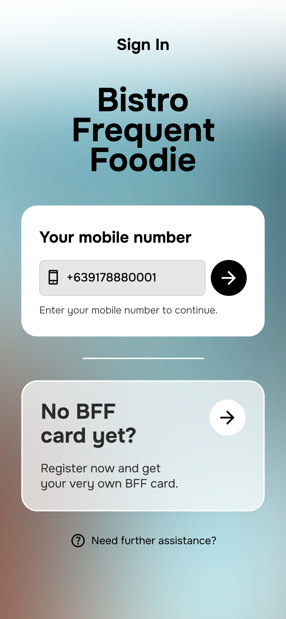 • Not yet a BFF Card holder? No problem, create an account without visiting the restaurant
