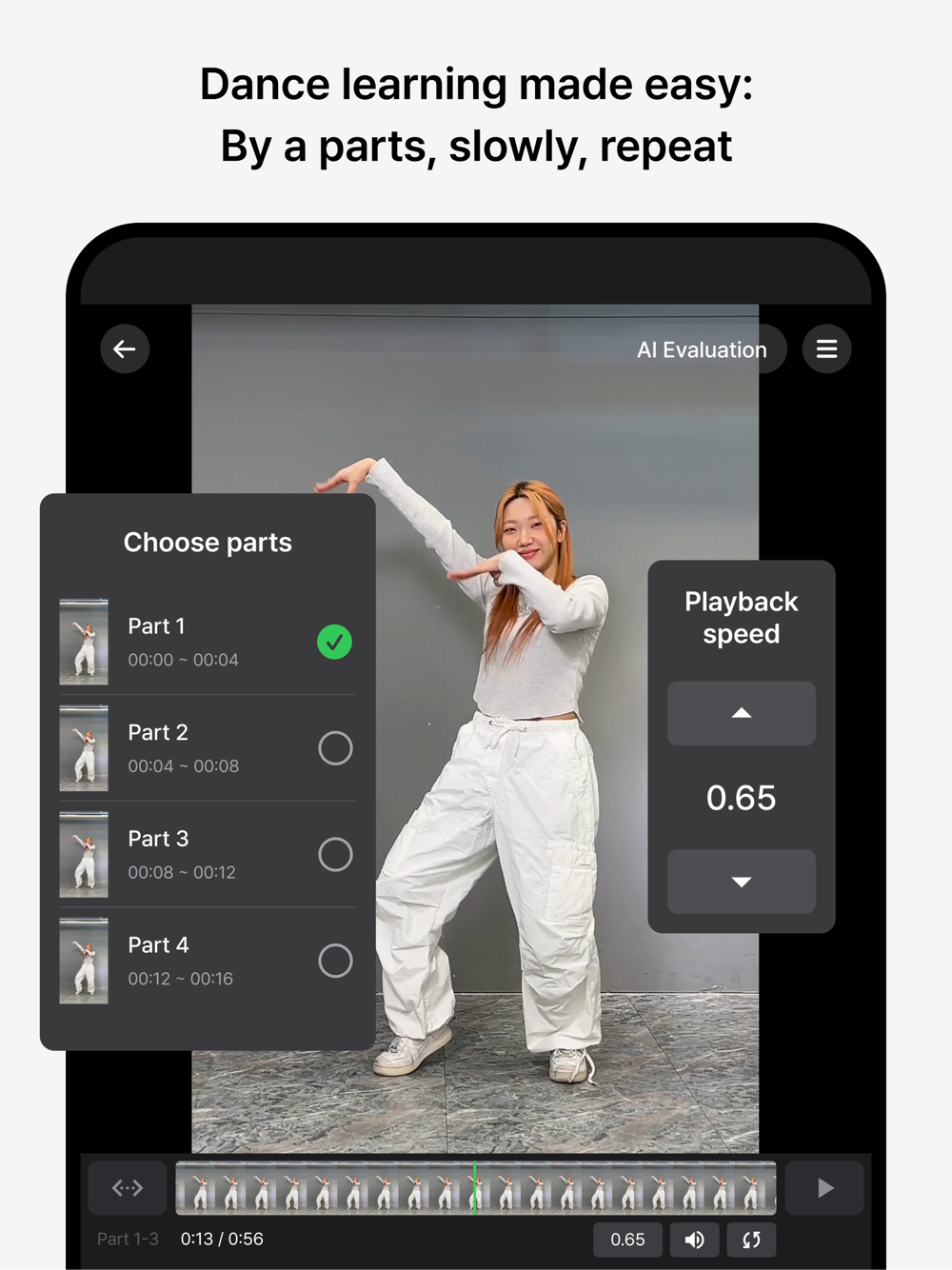 With loop, slow motion, and section repeat features, you can master any move easily and perfectly at your own pace. Plus, full choreos come with friendly voice guidance from instructors.