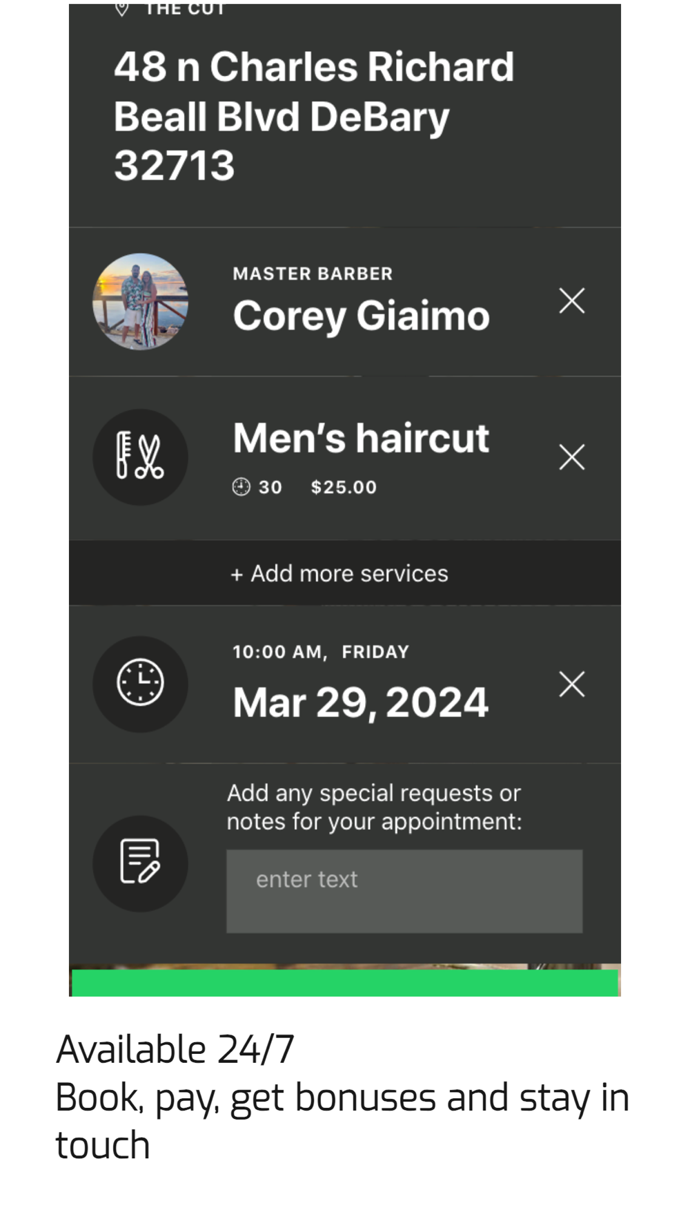 Welcome to The Cut app, your go-to solution for hassle-free barber appointments! Discover a seamless booking experience that puts you in control. Explore a range of services, check prices and durations, and effortlessly navigate through the schedule. Find the perfect time slot that suits you, ensuring a personalized grooming experience tailored to your schedule.