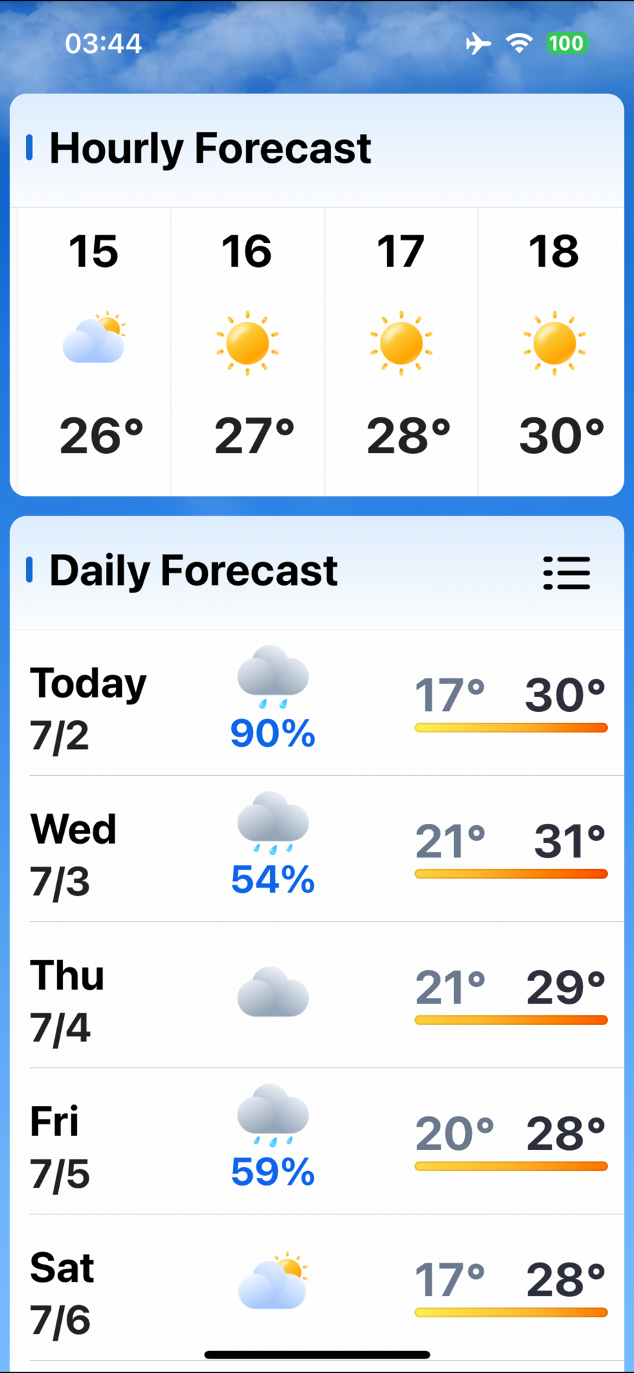 Therefore, we designed the weather app specifically for seniors. It has large fonts, clear interfaces, and easy interactions. More importantly, it has accurate weather data and vivid weather animation backgrounds. It is refreshing.