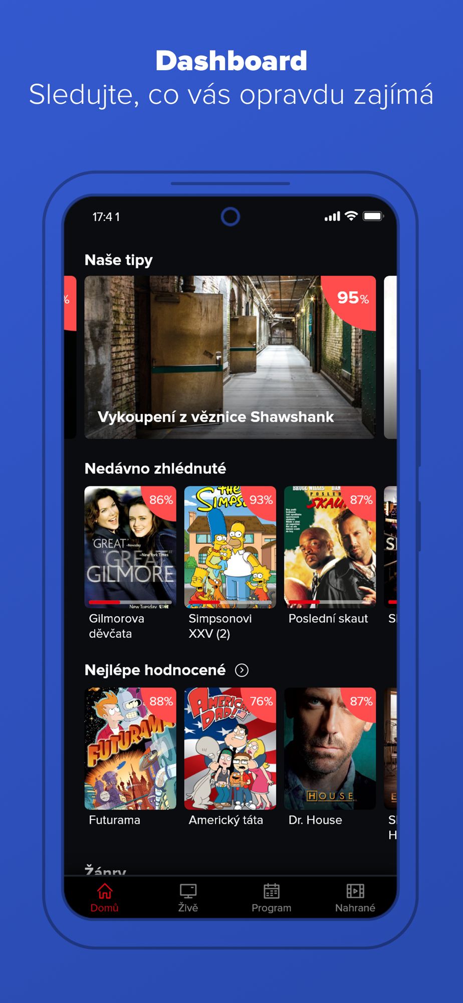 - živé televizní vysílání s možností přehrání od začátku
