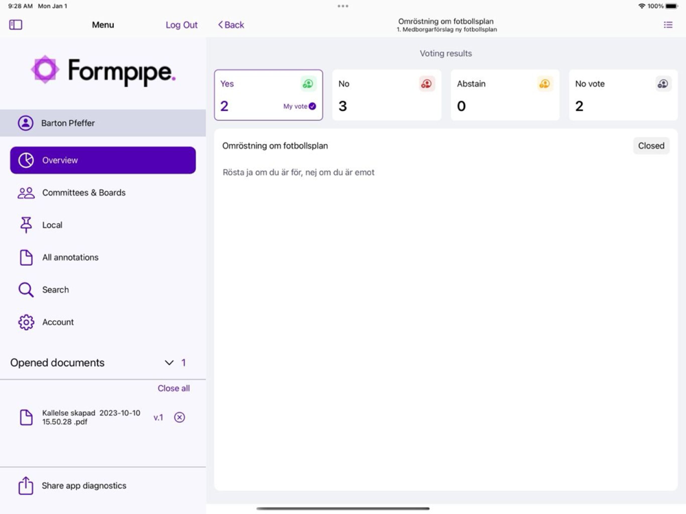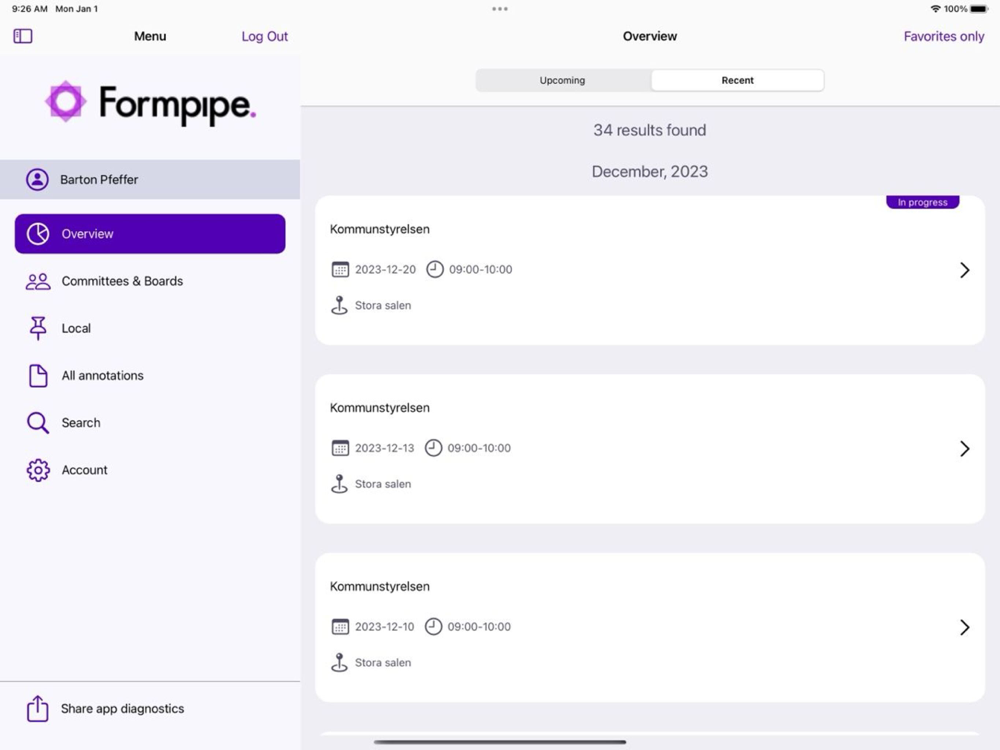 Meetings Plus by Formpipe is a web service and an app for digital and automated management of summons, documents and protocols for both citizens and meeting users within the public sector.