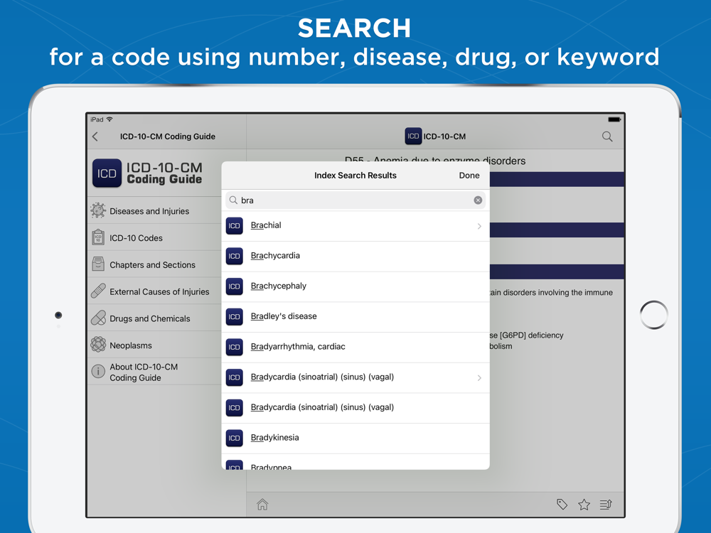 Featuring the latest ICD-10-CM data from the Centers for Medicare and Medicaid Services (CMS), this premium app helps you quickly identify the most appropriate code on your smartphone or tablet — with rapid search by code, disease, injury, drug, or keyword.