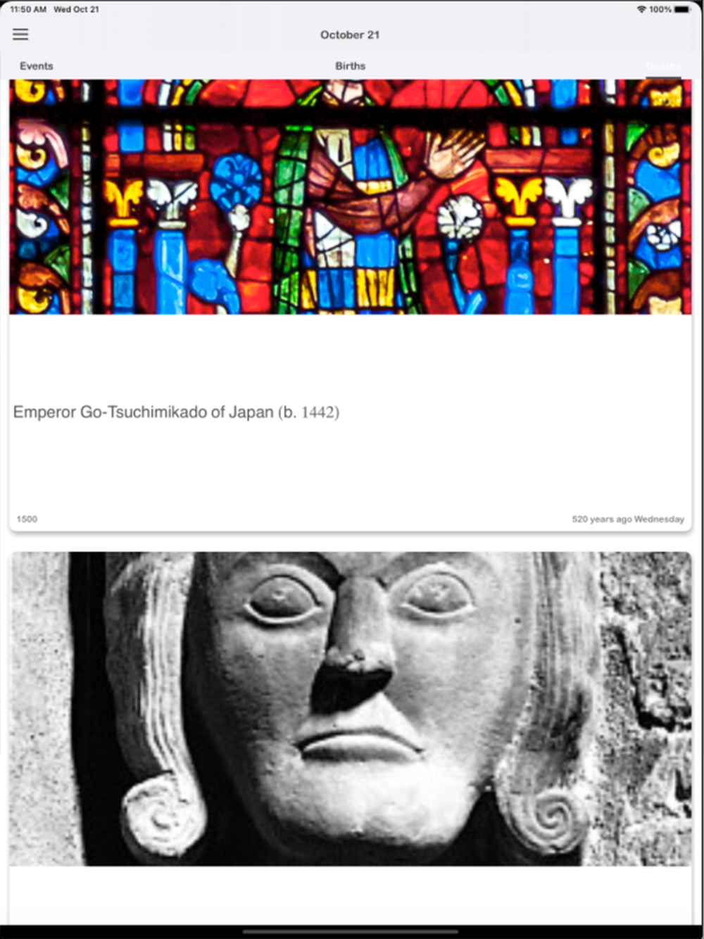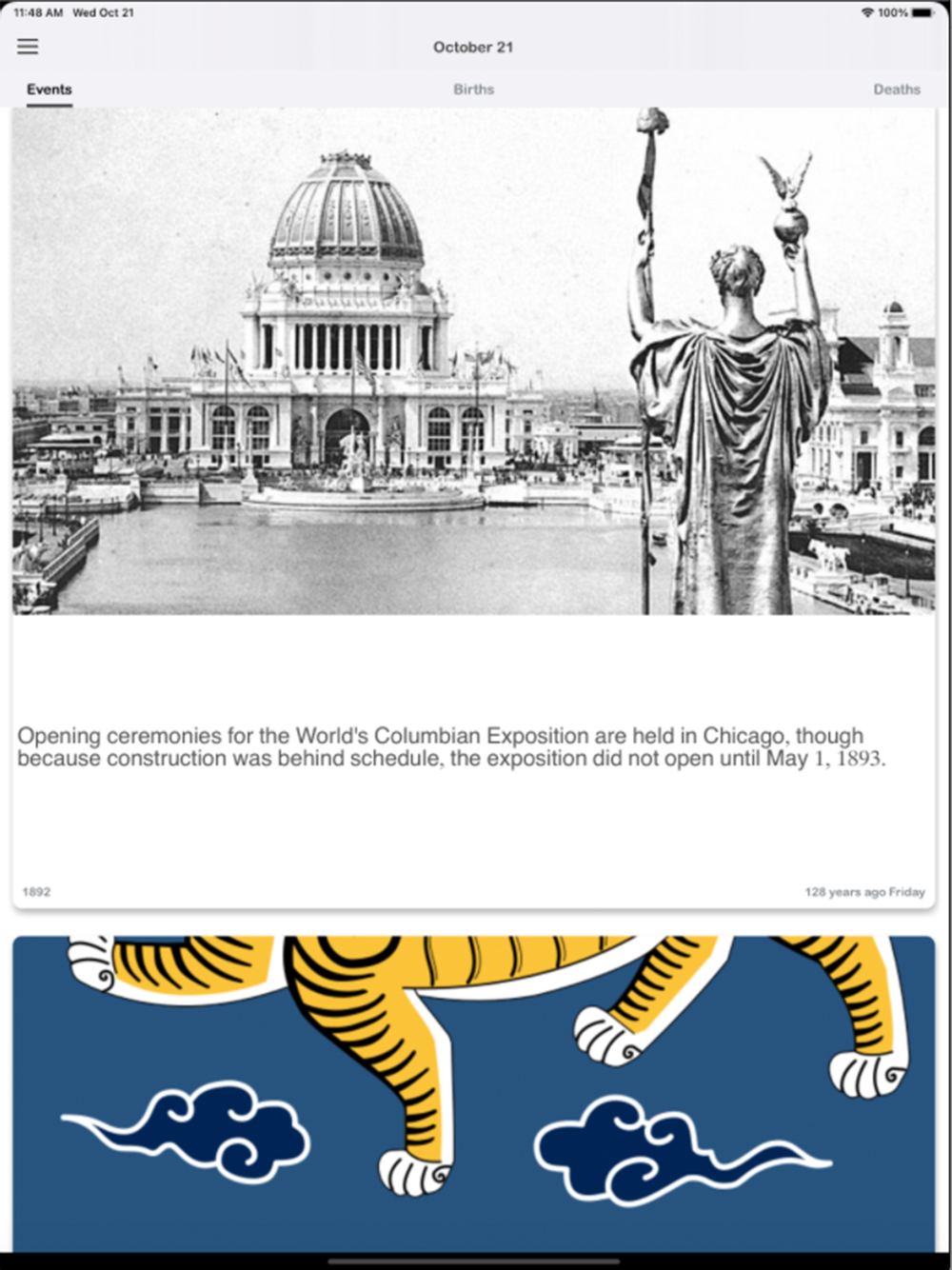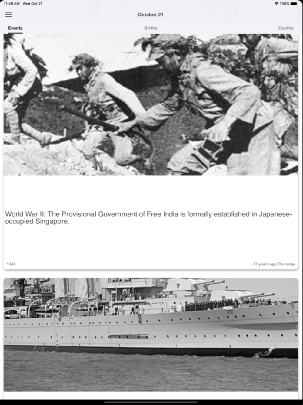 If you are interested in further information regarding a particular event, simply tap on the text and you get related links for that event.