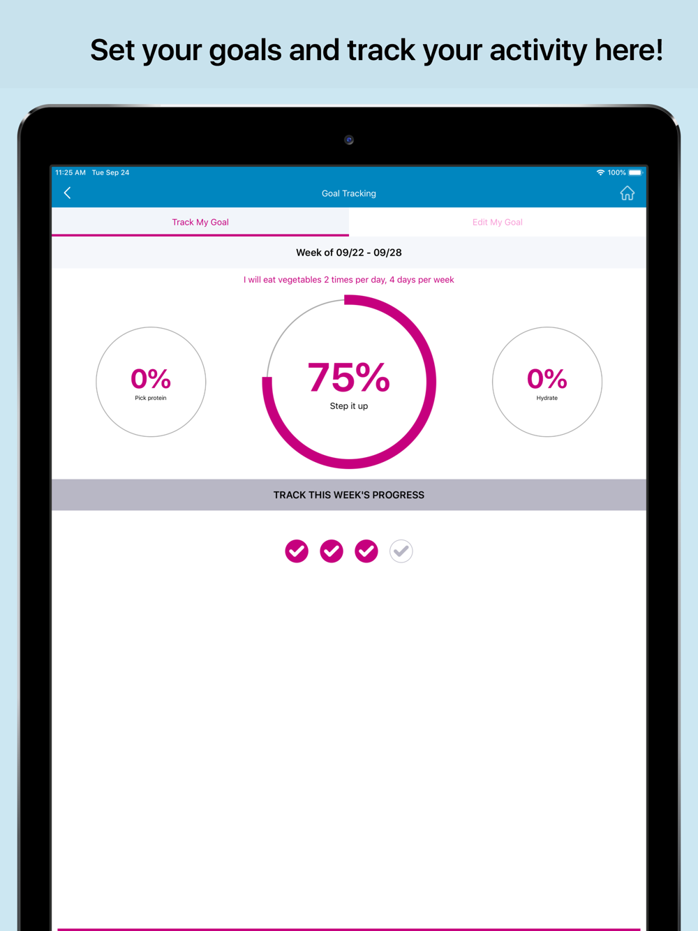 Note: The VHPGO program integrates with the iOS Health app (iOS HealthKit) to bring you the ability to measure and display your daily steps within application.