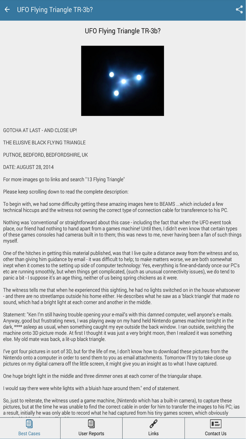 Read the fascinating cases of paranormal activity happening in your area and submit your own sighting for investigation by the B.E.A.M.S team.
