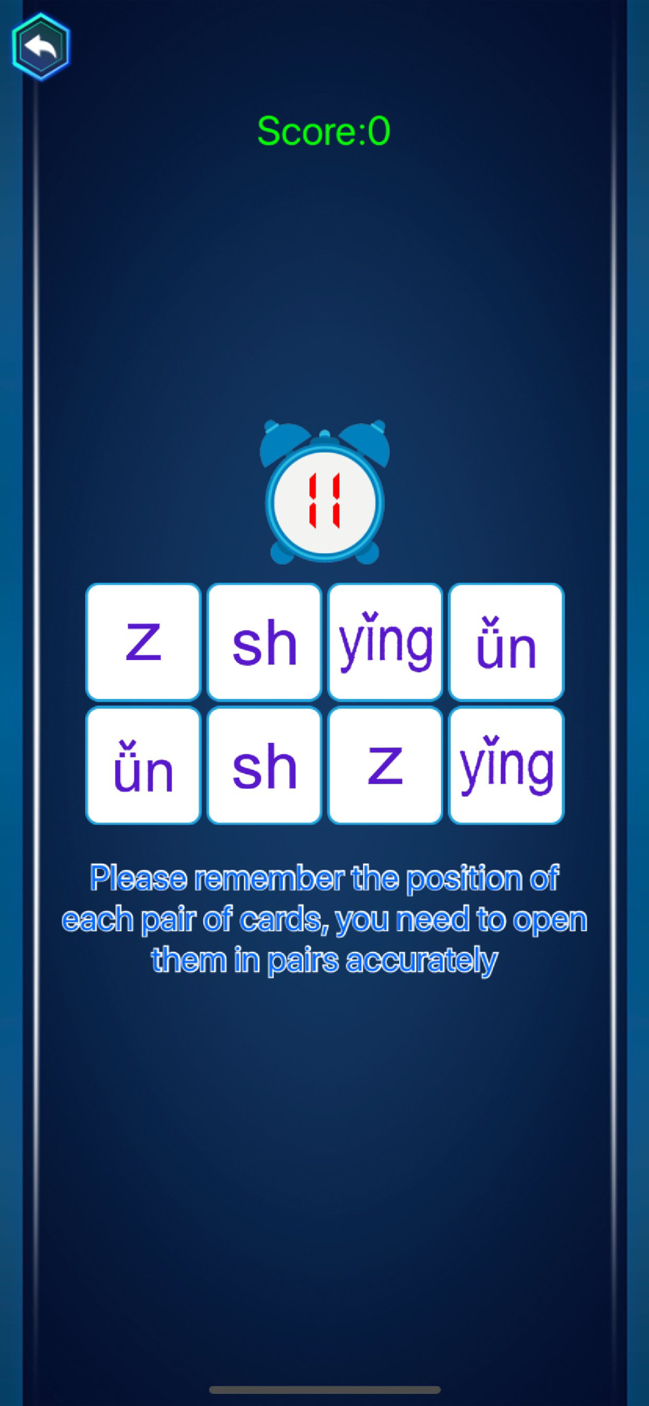 1. Listen to the voice and recognize the letters. Pronunciate the pinyin letters played by the mobile phone. Choose the letters you hear from the answers given to test your memory of pinyin