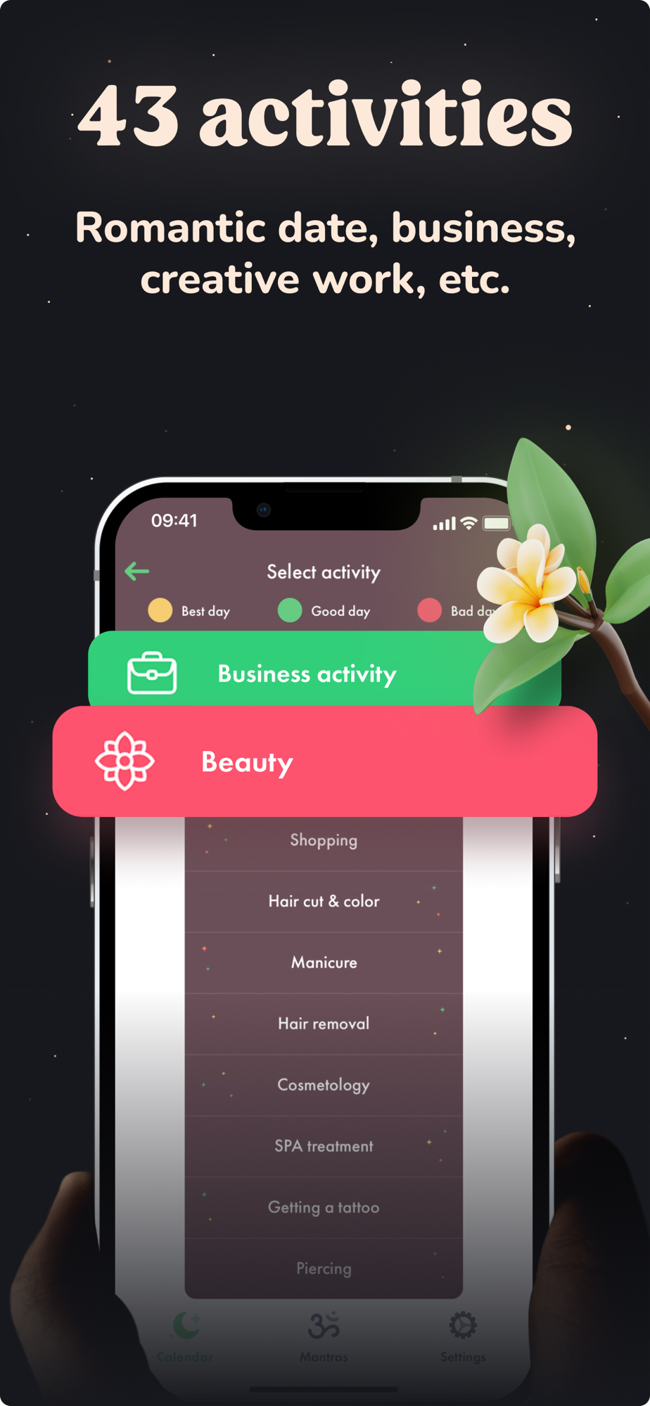- Calculation of auspicious days for 43 categories. With taking your personal astrological factors into account.