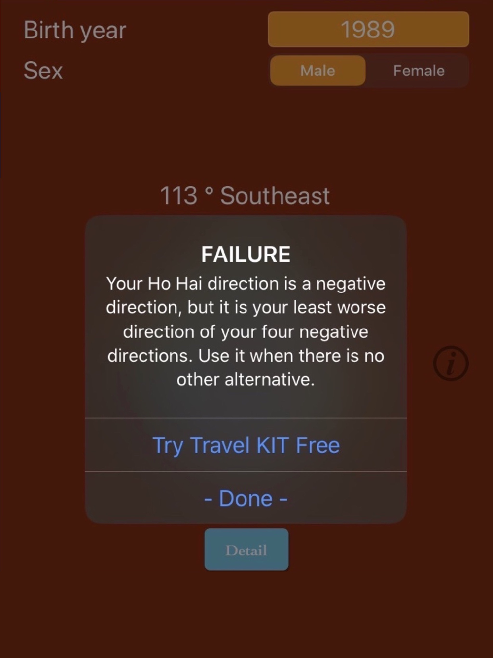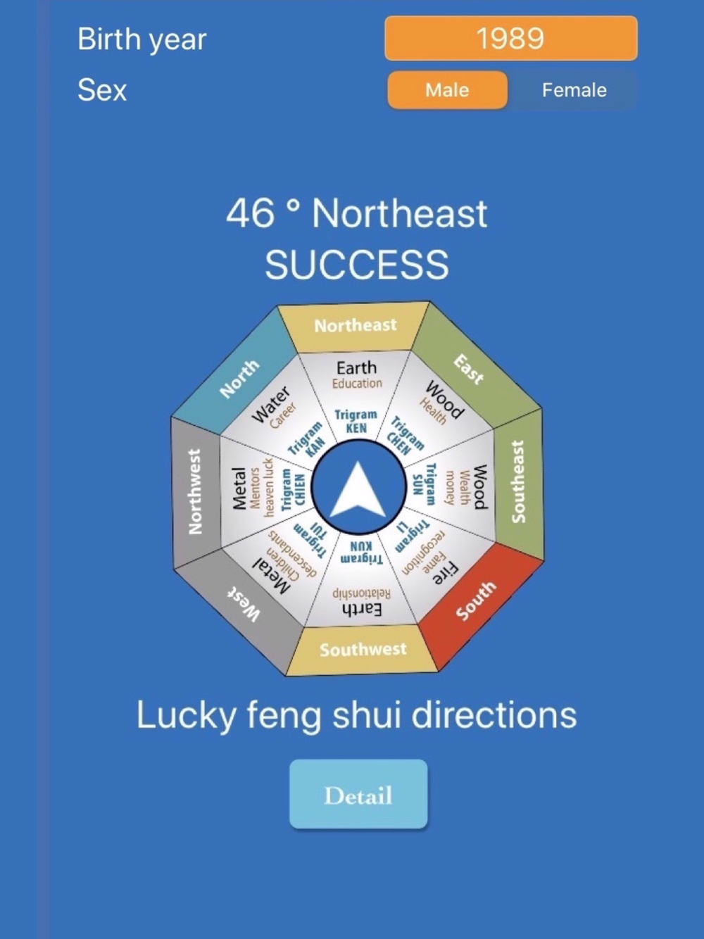 For each person exists FOUR favorable geographical directions and FOUR not favorable, depending on age, character and the date of its birth.