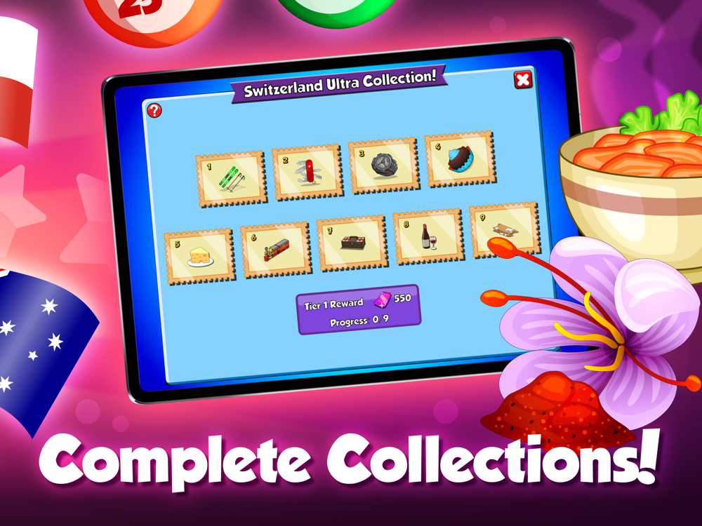 Play the FREE BINGO! WORLD TOUR today, travel and explore the world playing cards in exotic rooms and collecting postcards and collectible souvenirs which can be turned in for rewards and tickets.