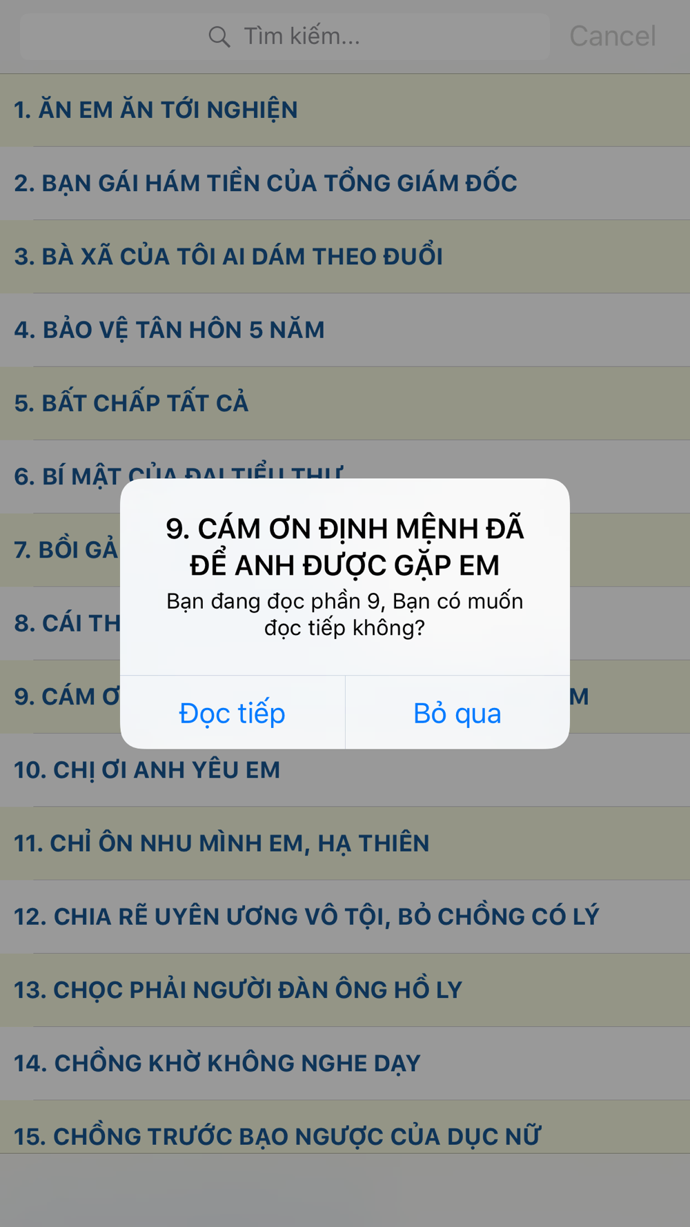 - Tính năng đọc tiếp truyện ngôn tình đang đọc để bạn truy cập nhanh và đỡ mất công ghi nhớ.