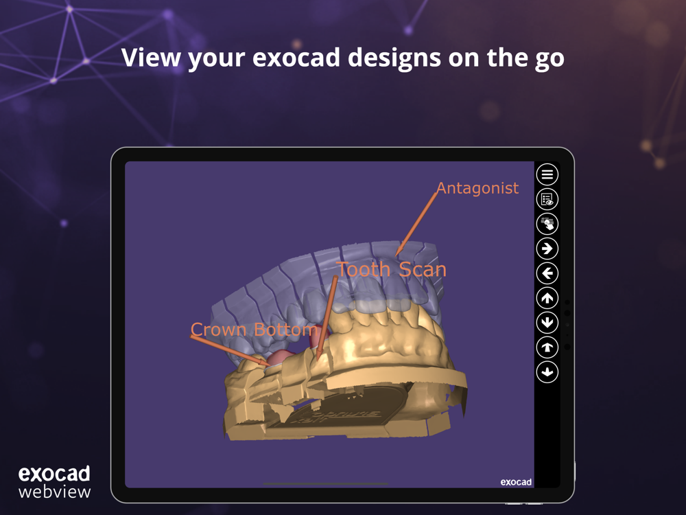 Load almost any type of 3D-model quickly and easily in our free 3D-viewer. exocad webview seamlessly loads meshes and functions intuitively on any mobile device. All common open file formats are supported – STL, OBJ, PLY and many more.