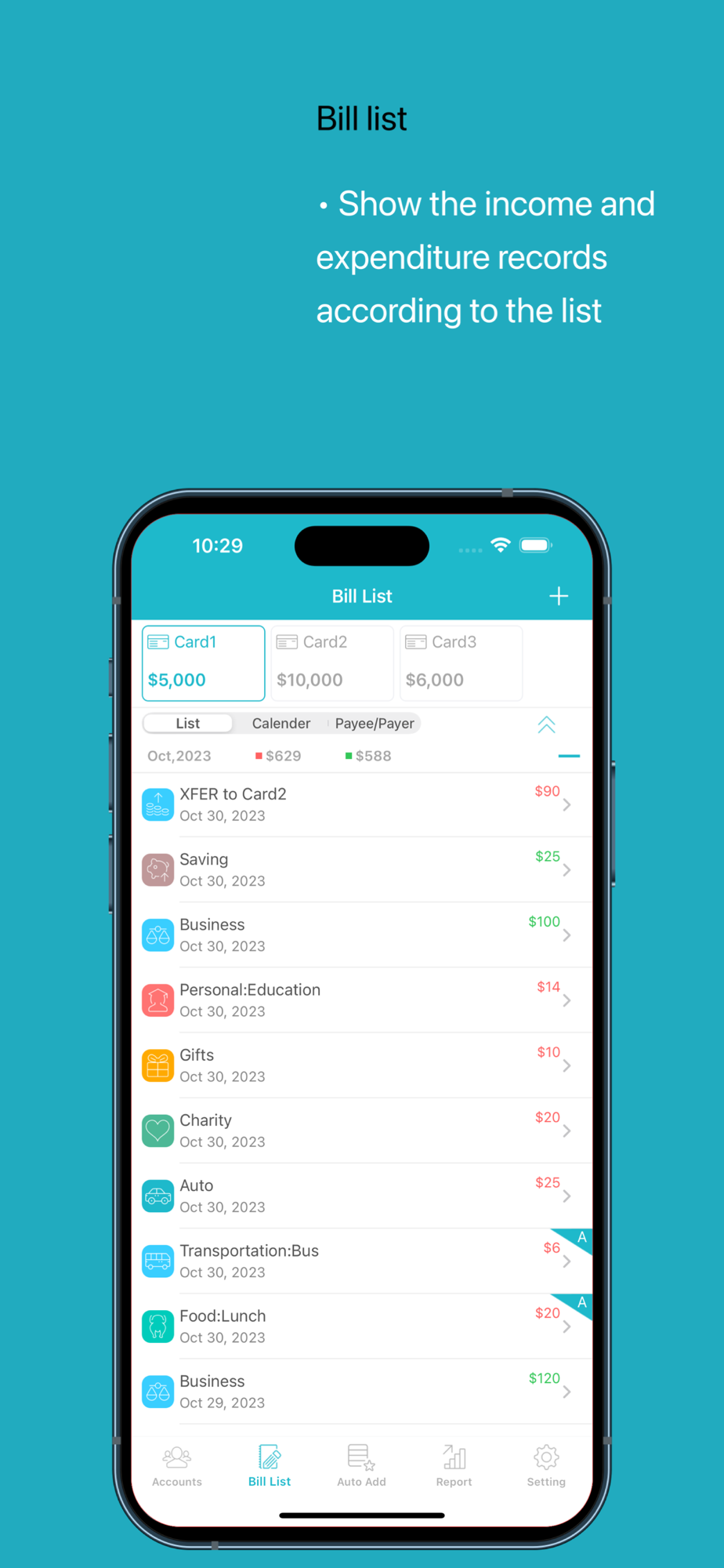 Bill List - the fastest way to record the daily cost. Through the chart analysis of your daily expenses。