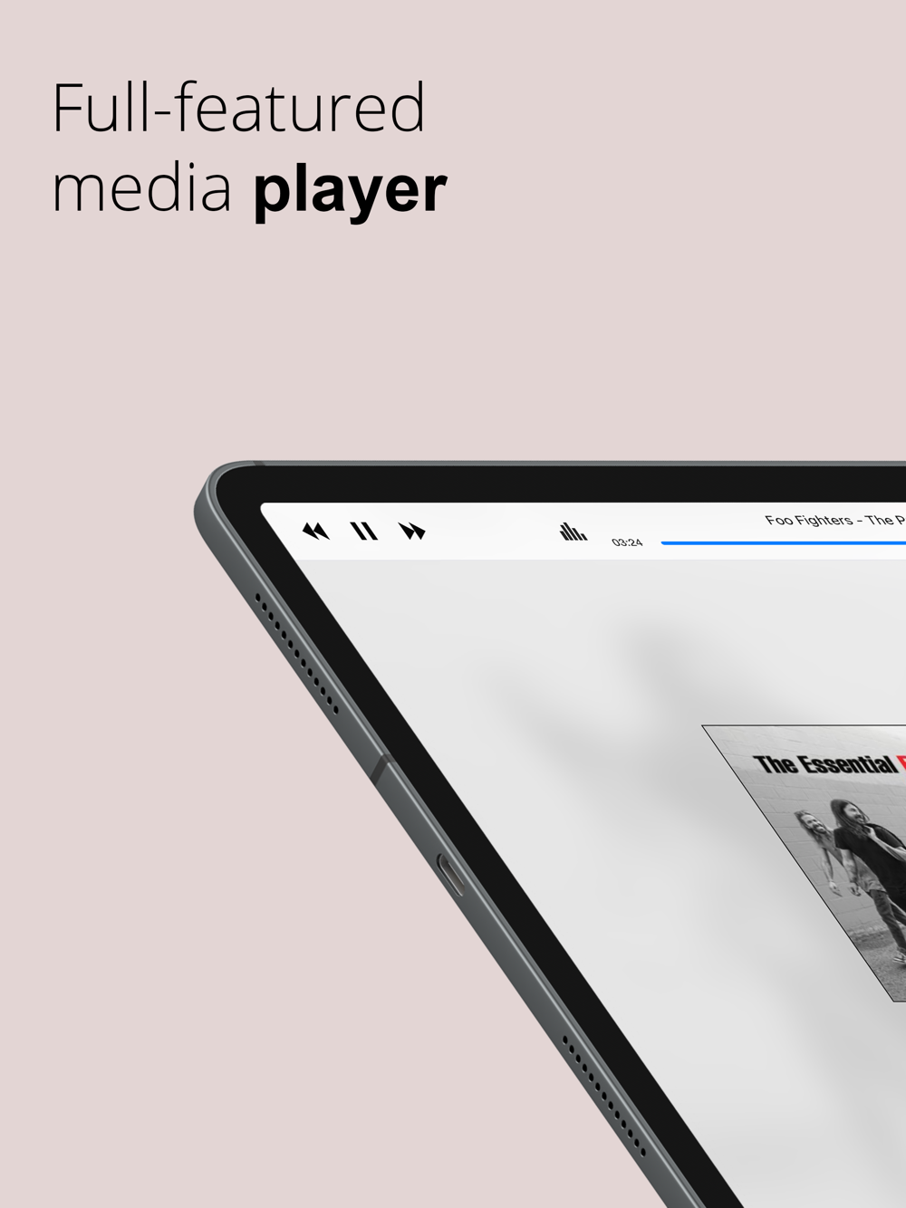 – Full-featured media player. Supported formats: avi, mp4, mov, m4v, mkv, asf, mpeg, vob, webm, flv, mp3, flac, ogg, m4a, 3gp, amr, ape, dff, dsf, wma, wv, wav, mp2, xwma, tak, aiff