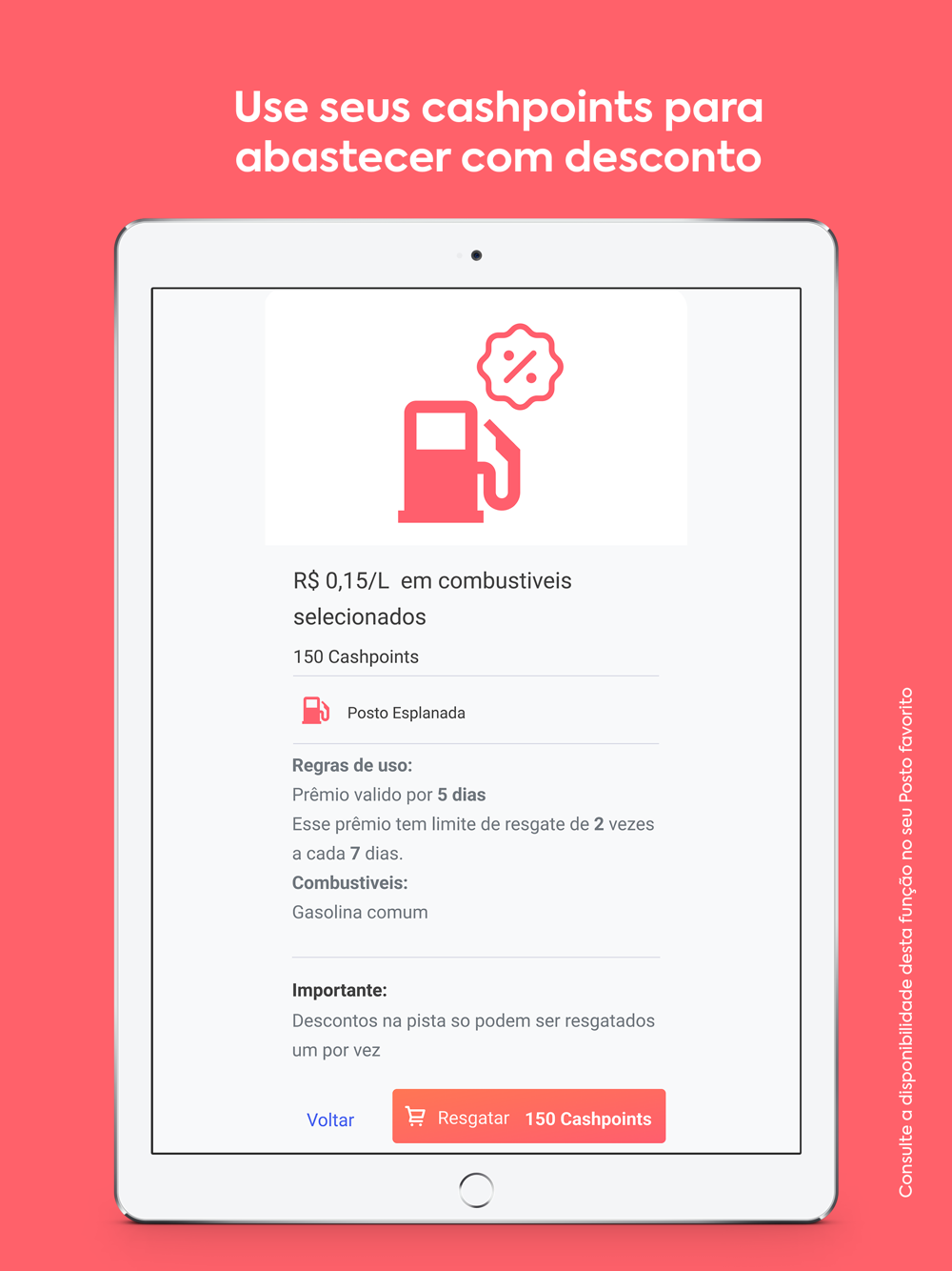 Resgate direto pelo app de forma fácil e rápida. Escolha a o Posto ou Loja em que deseja resgatar, selecione o prêmio, a quantidade e emita o voucher. Depois é só apresentá-lo para retirar o prêmio.