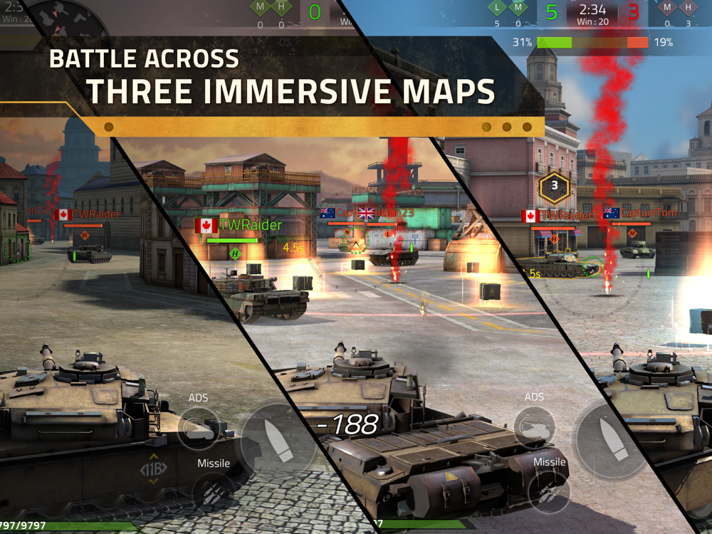 Jump into the fight with just one tap and go to war with intuitive arcade gameplay and pick-up-and-play controls. Experience the excitement of real-time shooter combat as you control your team’s fleet of powerful tanks and defy opposing squads with guns booming on three immersive maps, including Havana, Italy Town, and the Freight Yard.