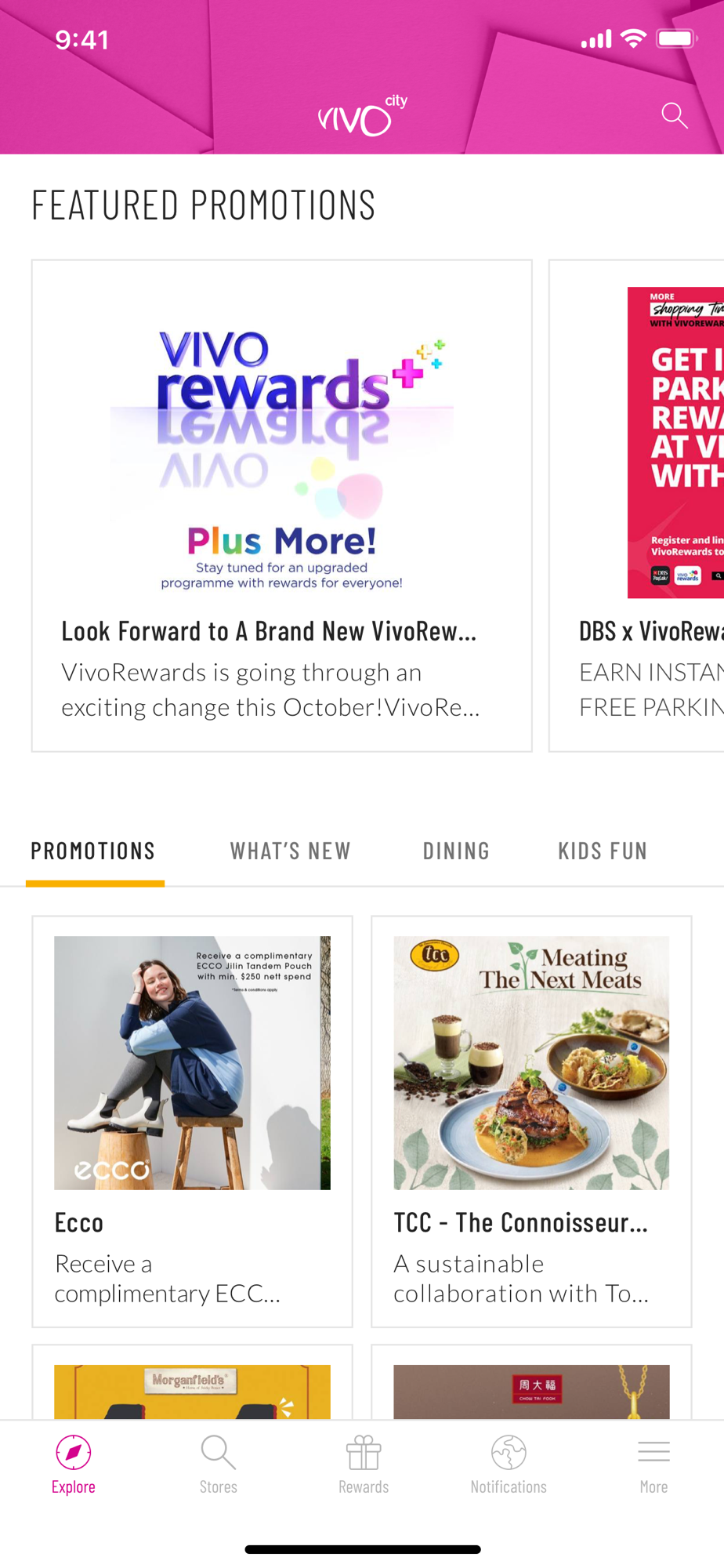 Become a VivoRewards+ member to get fantastic rewards when you shop and dine at VivoCity. Get access to the latest updates about parking availability, store information and be notified on the latest promotions and offers available. Enrol the little ones in our Kids Club program for invitations to fun, exciting events and make use of exclusive member offers and discounts at participating outlets.