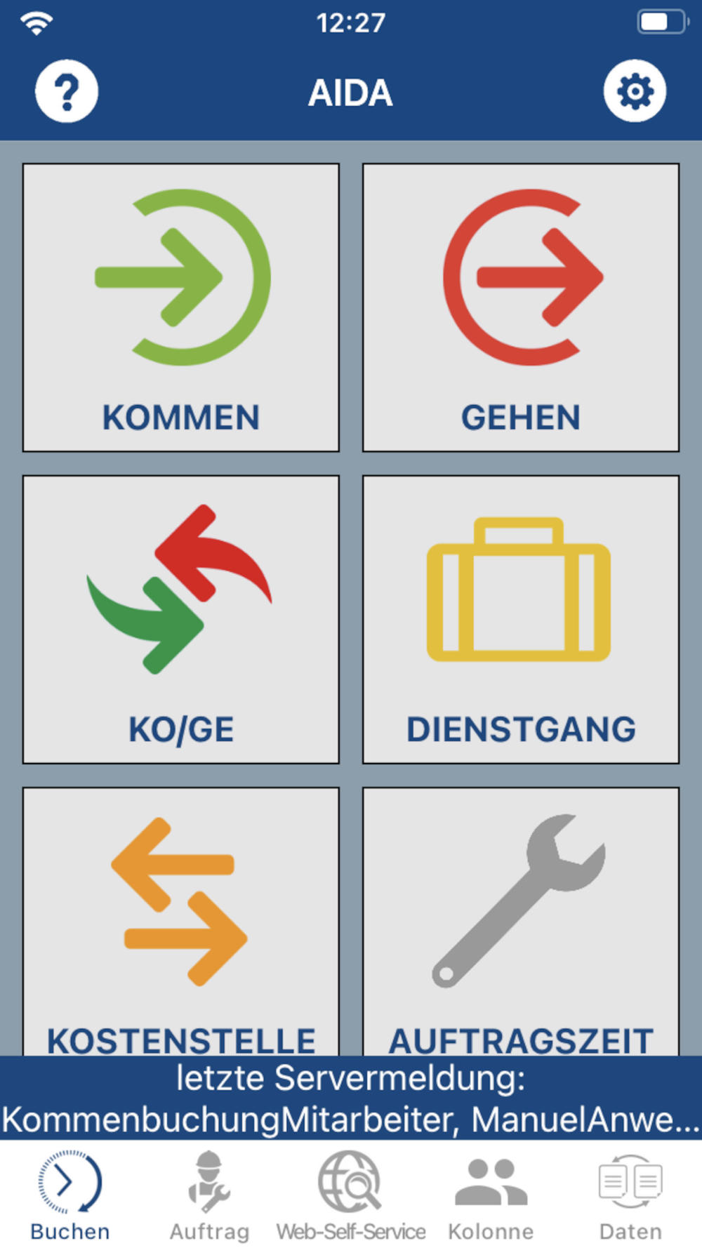 Mit der AIDA-App können Sie ganz einfach Vorgänge wie Kommen/Gehen, Dienstgänge, Bilder, Nachträge, Kostenstellenwechsel, Auftrags-/Projektzeiterfassung intuitiv und schnell buchen und an Ihre AIDA Zeitwirtschaftslösung senden.