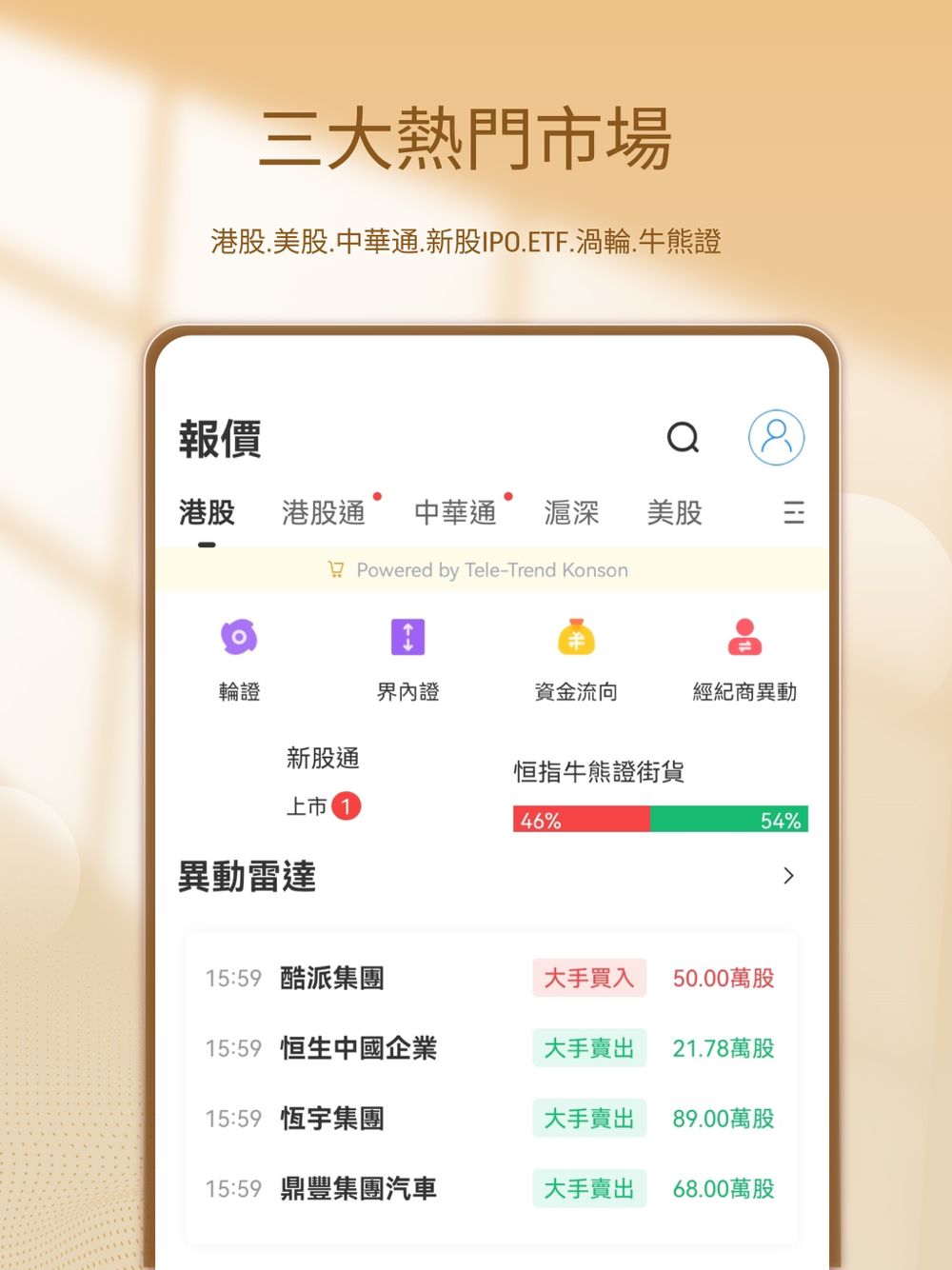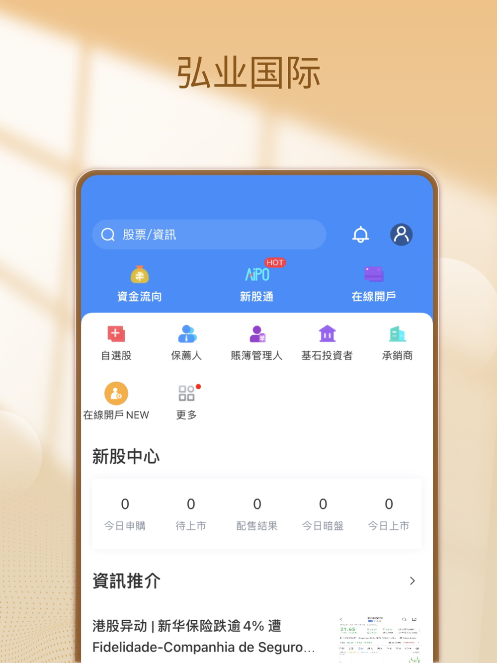【弘业国际交易宝】为用户提供更加方便和全面的资料及资讯服务,让投资者不管身在何处都可以轻松查看股市资讯及进行交易,紧握香港证券市场脉搏。