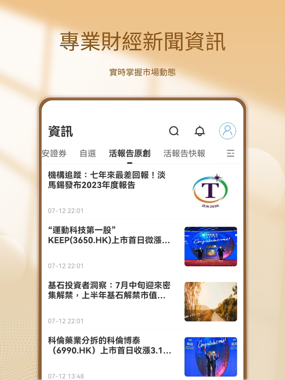 全面提供港股期货以及衍生证券市场报价及分析功能,即时推送技术让投资者用手机也能抓住期货的每一秒变动