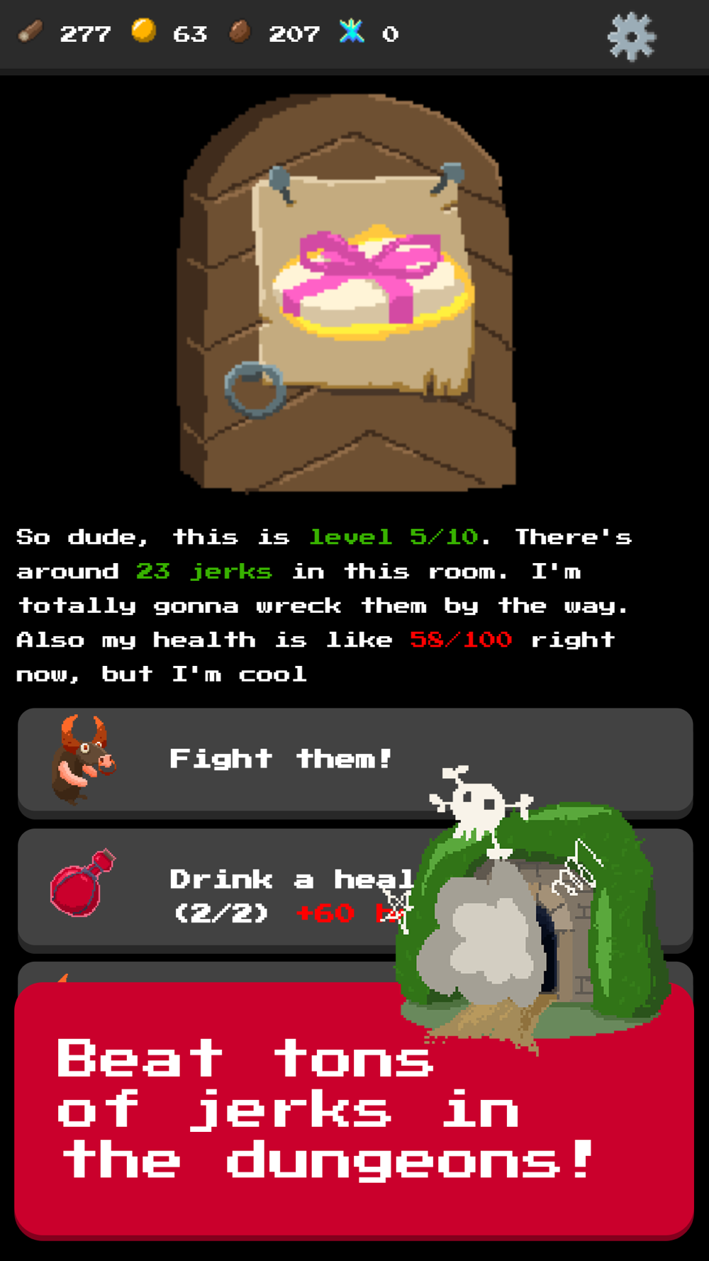 Fight your way down a deep deep dungeon leading to the core of yourself, and gain the respect of mysterious space gods.