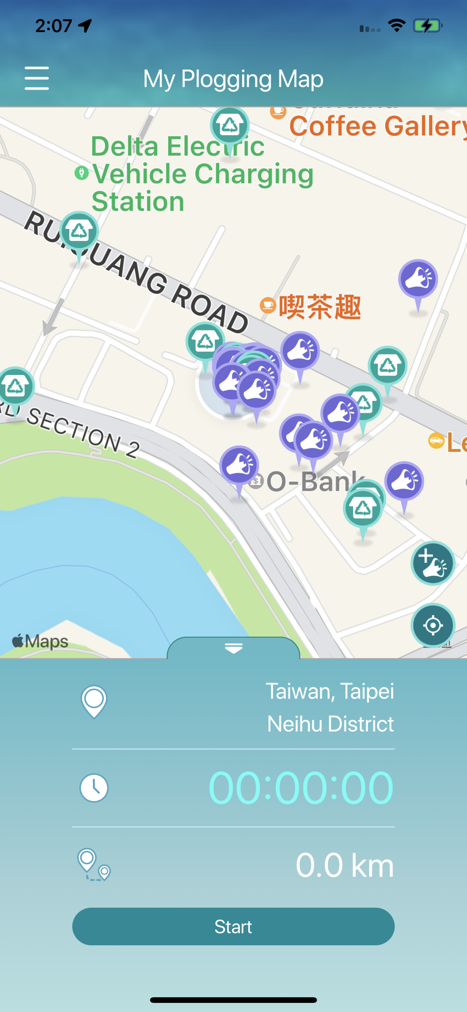 Go Plogging is an APP that records the number of picking up trash, location, distance and the time spent during the activity.