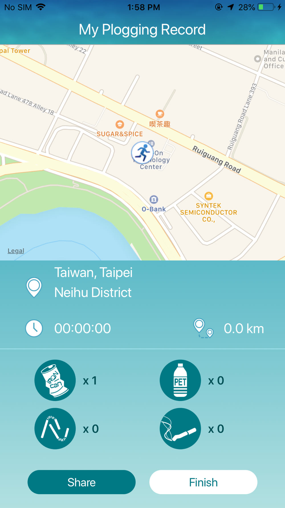To catch up with the trend, we issue up an APP that can cooperate with the activity. We can operate with ease and clear GUI. Besides from recording location, distance and time as other jogging APP, we can also register and submit the number of litters in each category and connect with the plogger all around the world. Afterwards, we can share the achievement with others through the social network to encourage them to join the event.