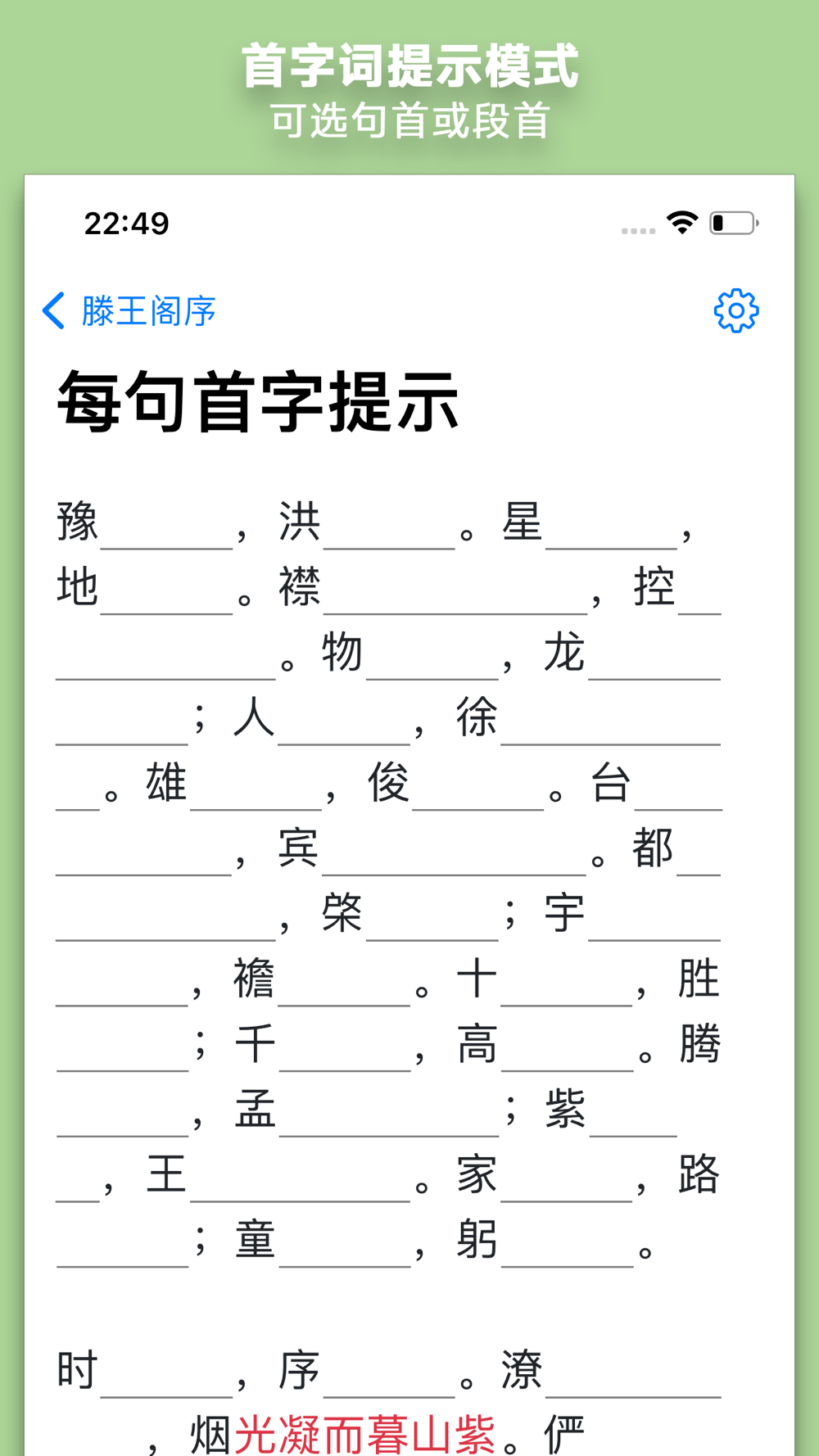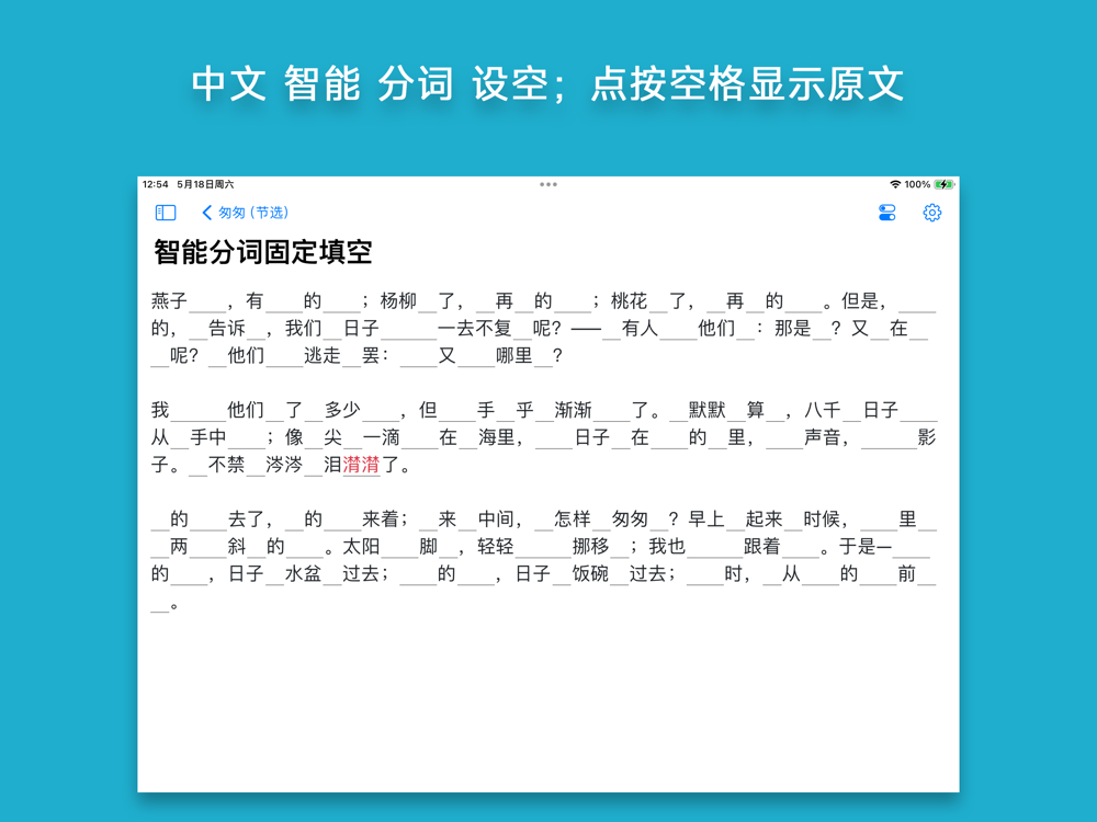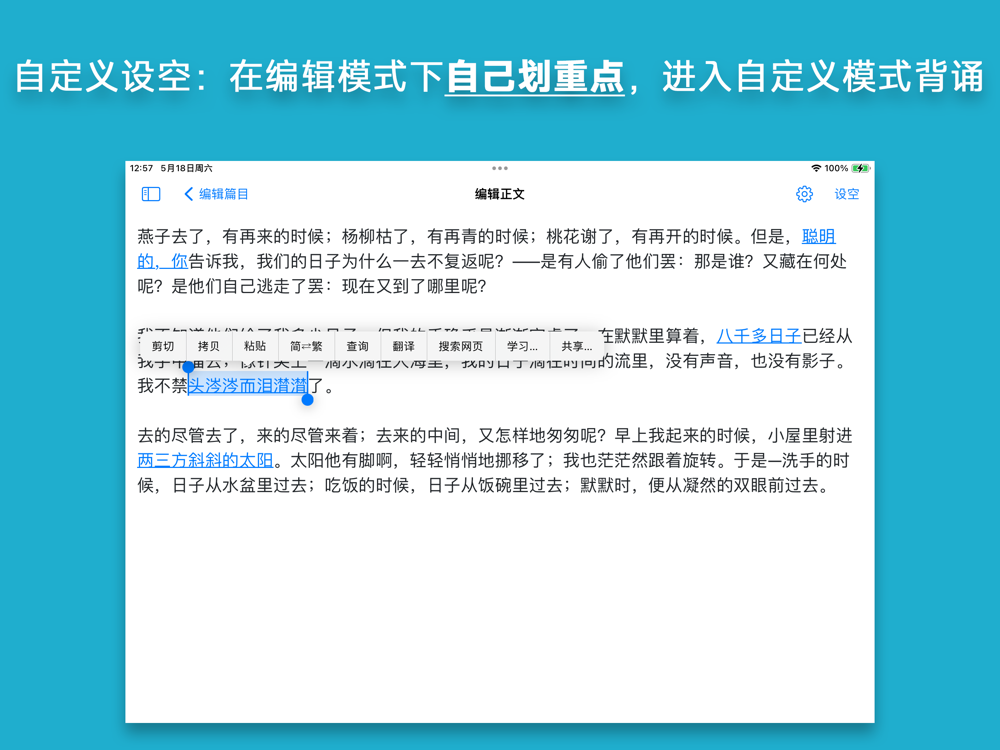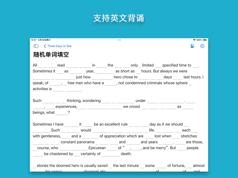 • 高效背诵:文本自动设空,用填空的方式调动记忆。