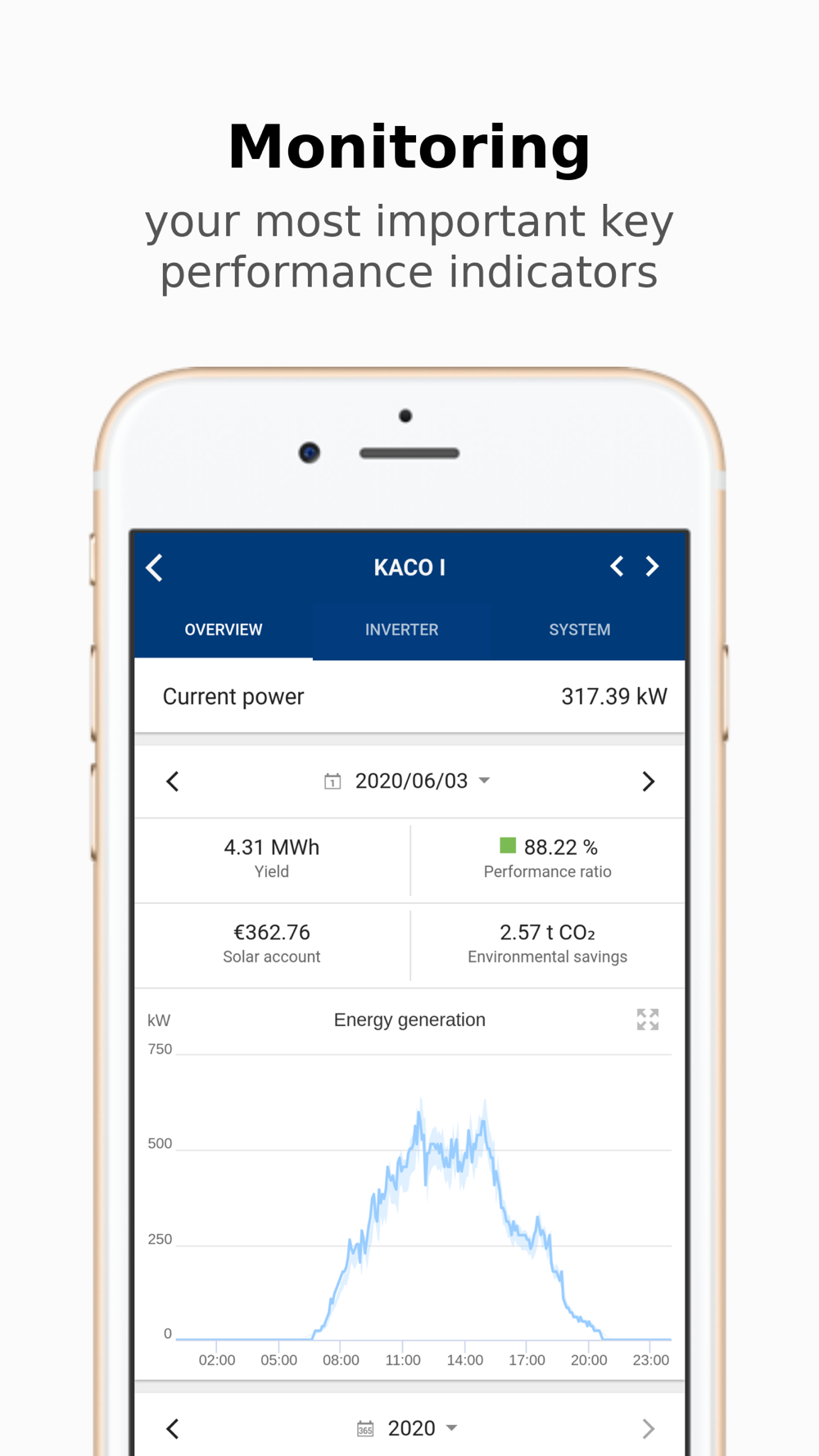 Get access to the performance of your photovoltaic systems from anywhere at every time with the KACO blueplanet web App!