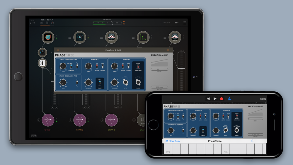 PhaseThree is a detailed model of the MuTron Bi-Phase, with all the lovely sound of that unit (along with its foibles and quirks.)