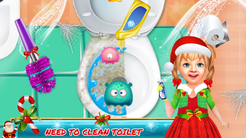 Can you help little baby girl clean up her messy house & make it ready for Santa Claus. Santa’s house is a mess & bore. Have Christmas fun around the messy house with tons of house cleanup activities.