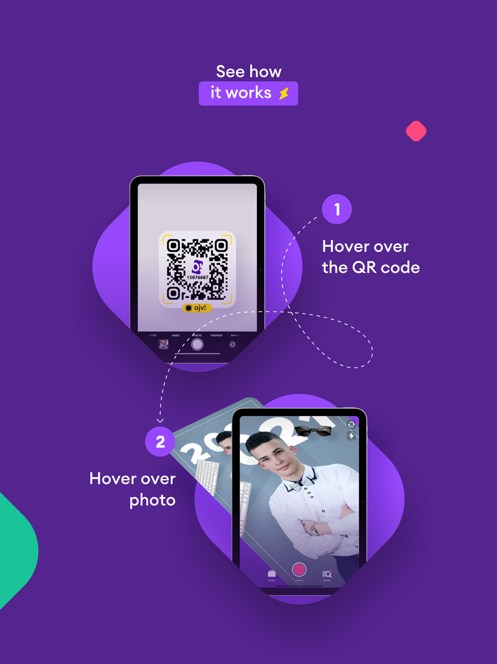 Download the app, point the camera at the QR code through the OJV! app, and the image next to it will come to life.
