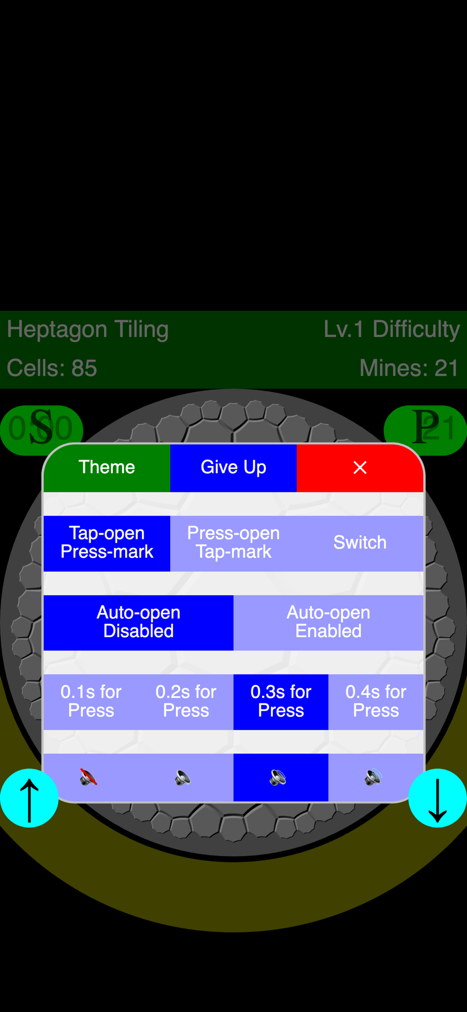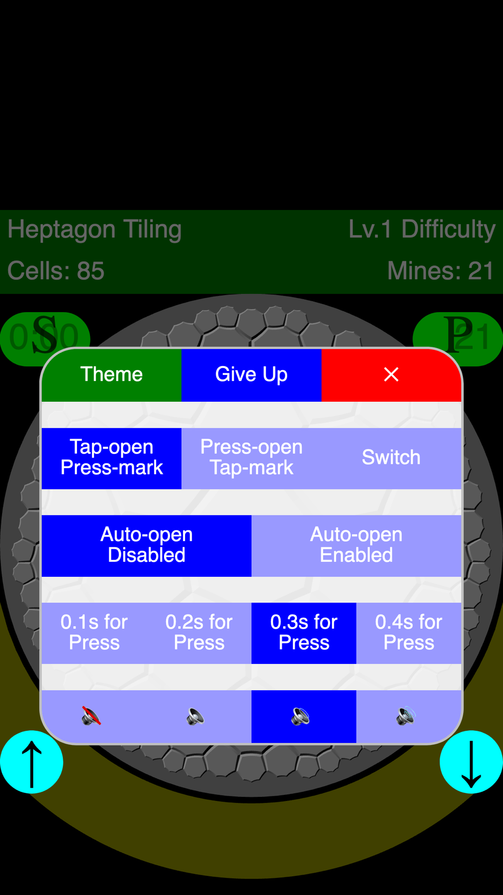 If a digit is revealed, it indicates the number of mines hidden in the adjacent cells. You can't open flagged cells. When you long-press a digit, the surrounding cells will open if you have correctly flagged.