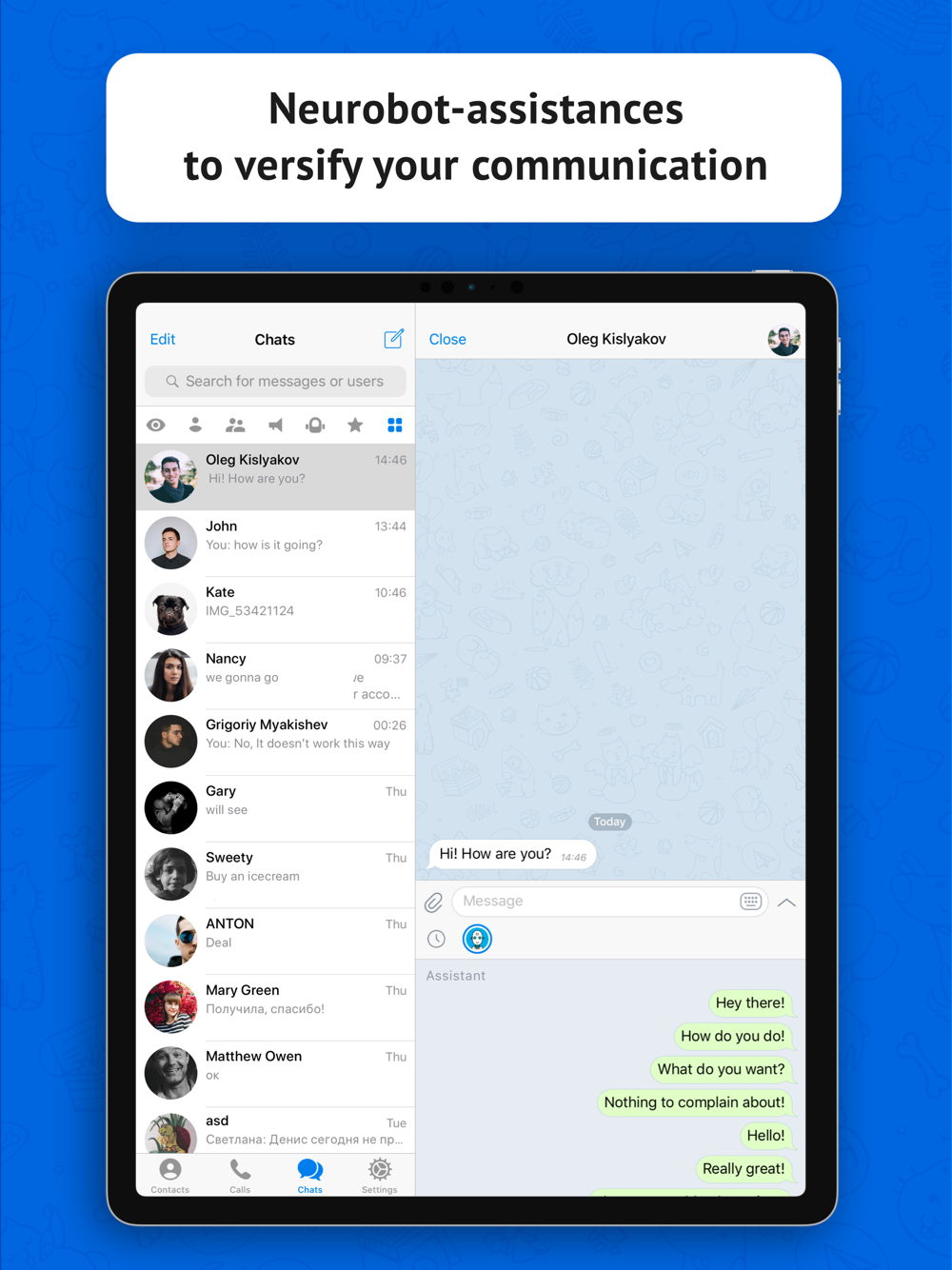 • Neurobot assistants offering quick answers in the form of phrases and GIFs;