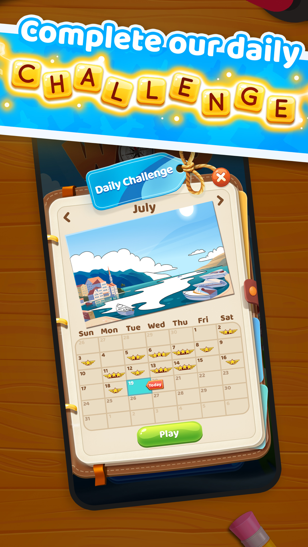 Every word you find will add to the meter! Fill the meter to earn a star and move on to the next round. Complete three rounds to earn three stars and mark off the day in your calendar.