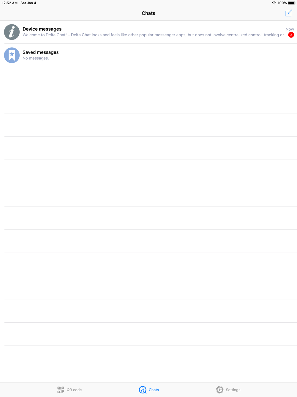 Delta Chat is a messenger that uses the largest, most diverse and decentralized communication system ever created: the existing e-mail server network. Just use your standard e-mail account and start chatting with any of your e-mail contacts, whether they have installed Delta Chat or not.