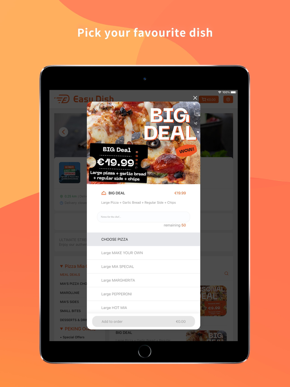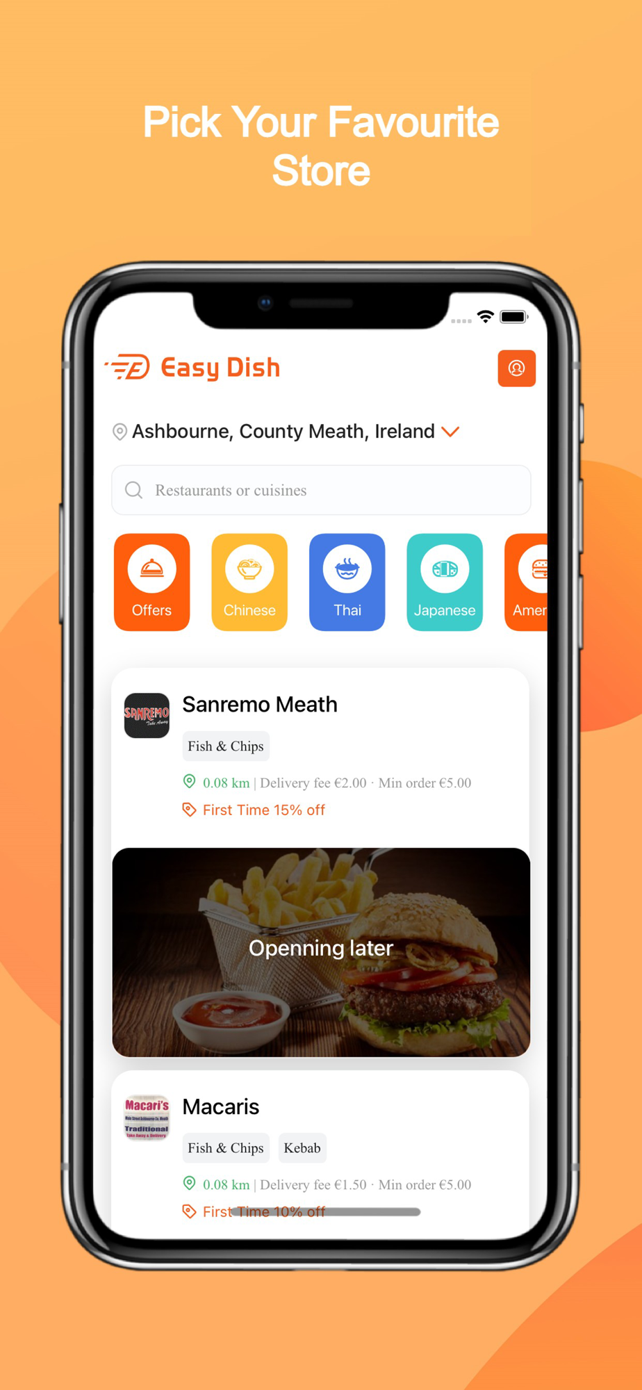 With the Easy Dish app, finding that perfect little tikka masala or juicy burrito couldn't be easier. Just pop in your Eircode to see which takeaway restaurants are near you, whether they offer collection, and even whether they have special discounts and deals.