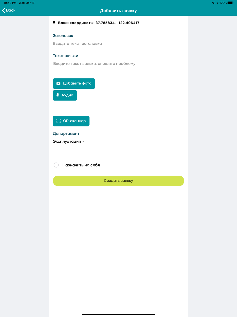Приложение позволяет получать заявки на работу, выполнять задания и закрывать заявки из Kaizen