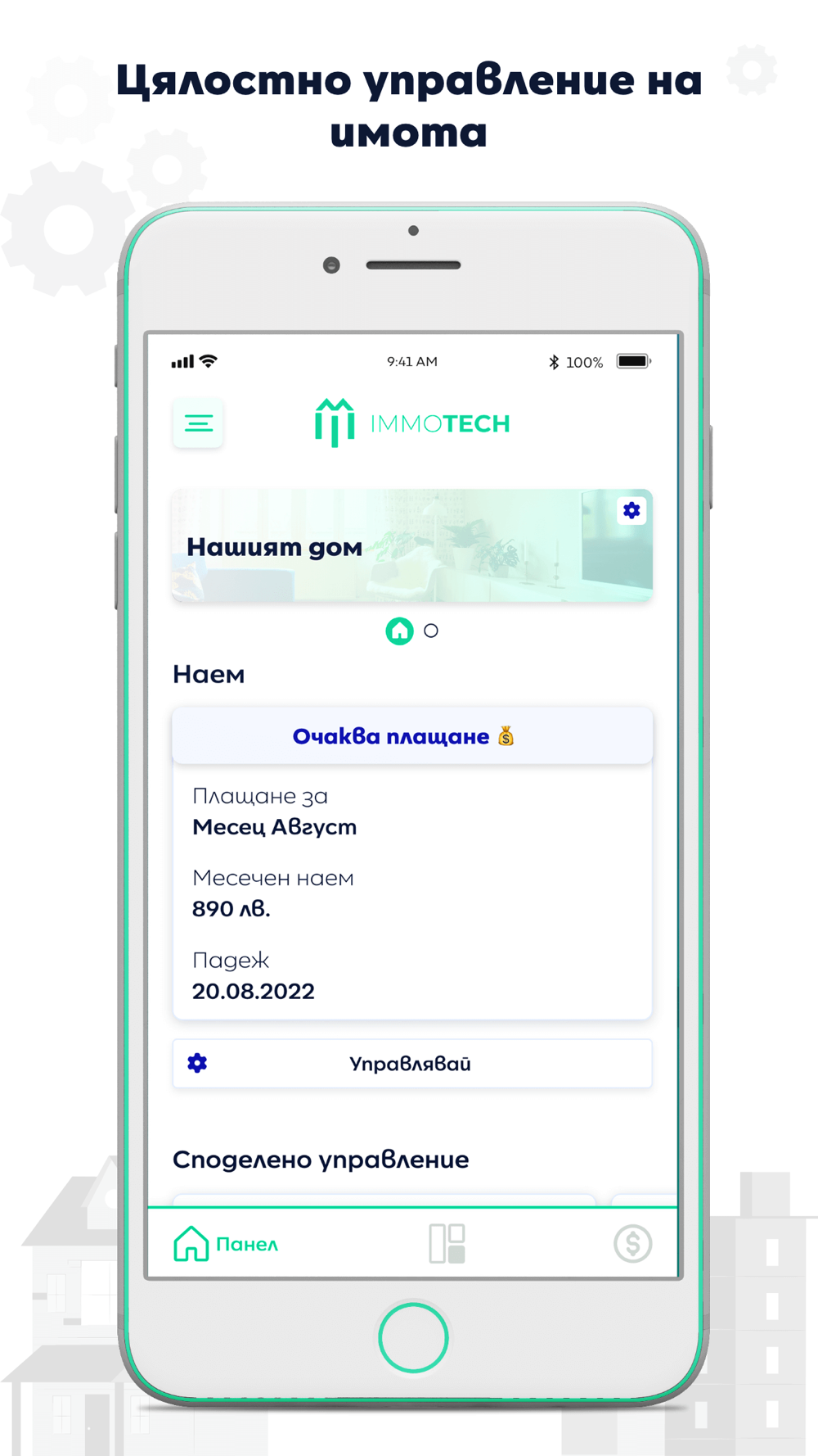 Immotech е абсолютно всичко за едно домакинство по дигитален път - плащане на сметки; следене на разходи; комуникация със съседи; търсене на услуги; складиране по папки на снимки, файлове и документи; споделяне на важни дати в общ календар. Immotech е мобилното супер-приложение с огромен набор от функционалности, така че всеки живущ да има поне едно нещо, за което Immotech да е полезен в неговия имот и домакинство.