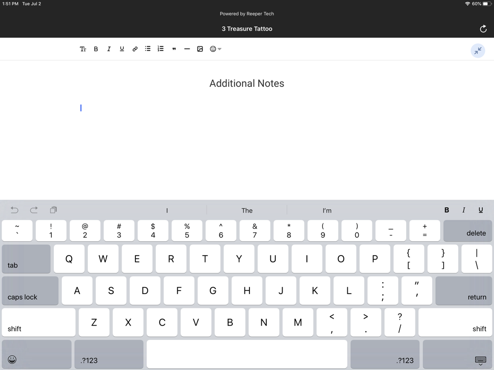 The 3 Treasures Tattoo: Reeper Tech application allows you to submit your tattoo release form securely from your own device!