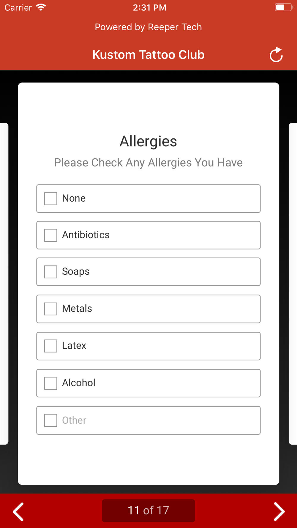 The Kustom Tattoo Club - Reeper Tech application allows you to submit your tattoo or piercing release form securely from your own device!