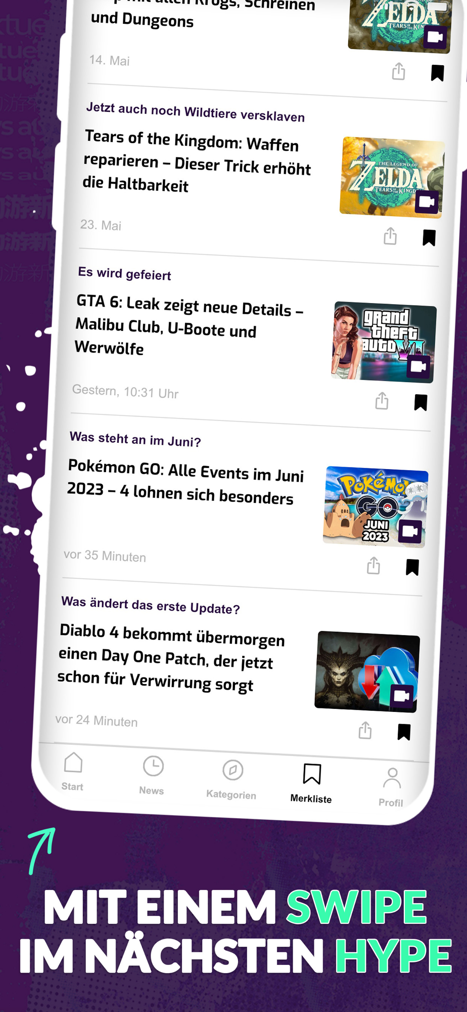 - Immer im Spiel: Erhalte Push-Nachrichten zu Gaming News, Streaming Trends und E-Sport-Neuigkeiten direkt auf dein Handy. Benachrichtigungen kannst du jederzeit ein- und ausschalten.