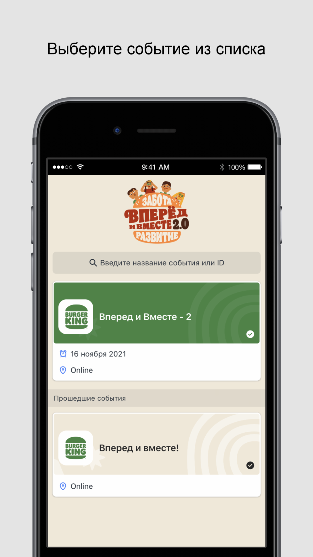 Официальное приложение только для сотрудников БУРГЕР КИНГ РОССИЯ «BK Events».