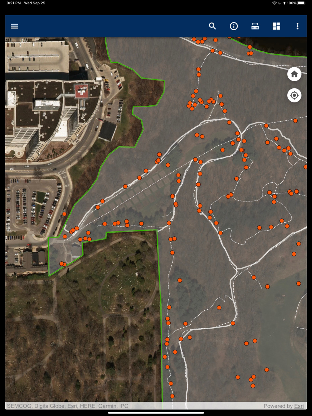 Discover 117 species of trees, shrubs, and vines in the Nichols Arboretum at the University of Michigan in Ann Arbor. These data were originally collected for use by the Woody Plants course at University of Michigan, and now it is available to the public! We have found over 500 examples of woody plants in Nichols Arboretum that are on the Woody Plants study list. Use your location to move around the Nichols Arboretum and tap on the points on the map to learn the different species of trees around you, including information like: DBH, condition, common name, estimated height, images, and more. Using this app, users can also measure distances and areas, change to various basemaps, and link to the Michigan Flora website. Michigan Flora contains detailed scientific information about woody plants (created by the U-M Herbarium).